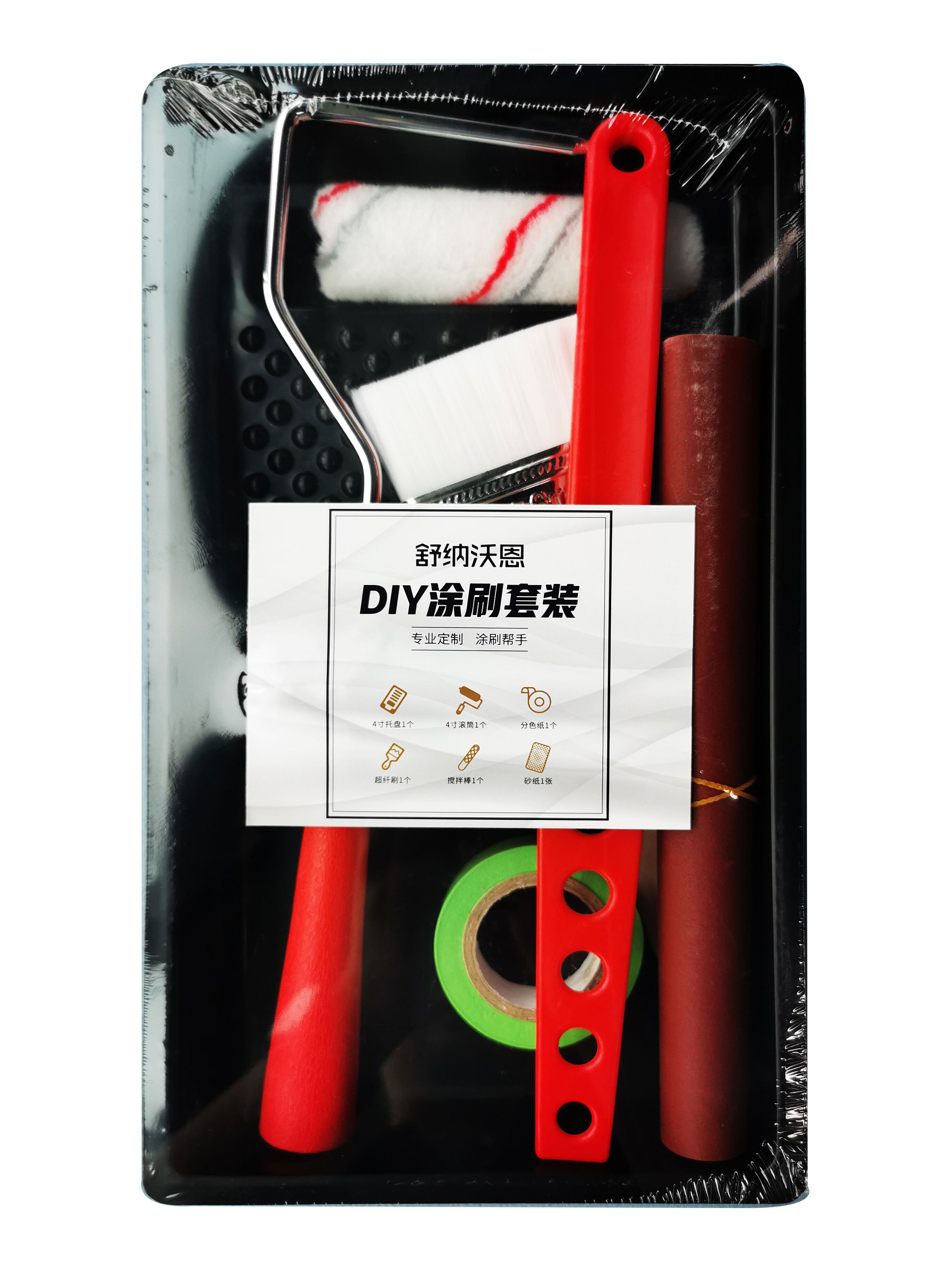 套装包含:4寸托盘一个,精细毛刷1个,4寸滚桶一个,搅拌棒一个,砂纸一张,分色胶带一卷。售价48元,不单卖。