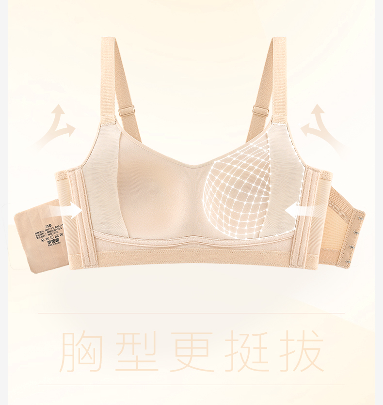 梦芭蒂内衣女无钢圈大胸显小薄款文胸全罩杯收副乳胸罩包容无痕