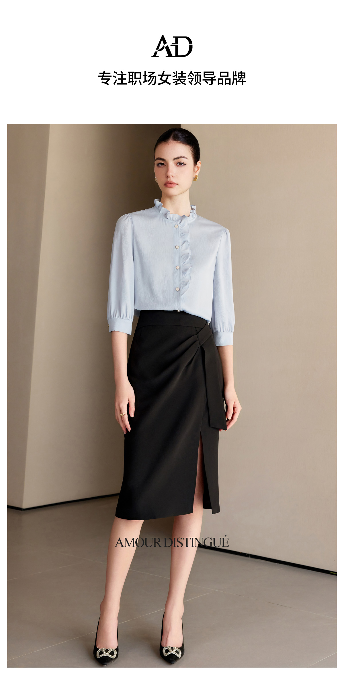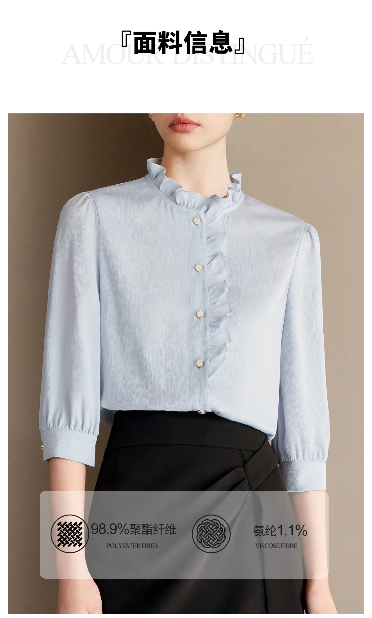 AD木耳边衬衫女2025夏季新款七分袖纯色上衣高级感减龄洋气衬衣