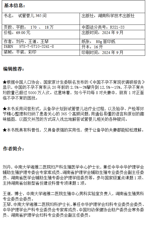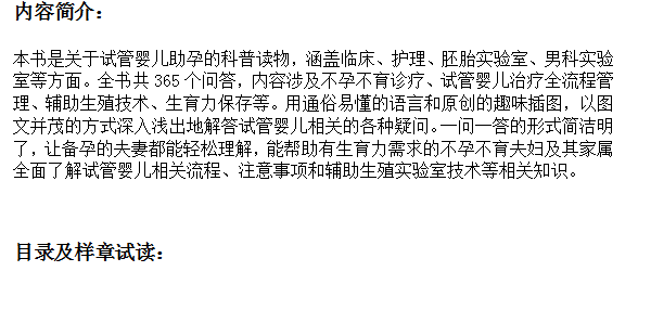 试管婴儿365问 关于试管婴儿 您想要知道的在这里!不孕 不育 保健 刘丹 王道 王琴