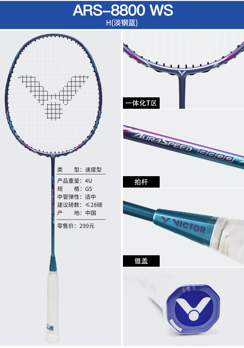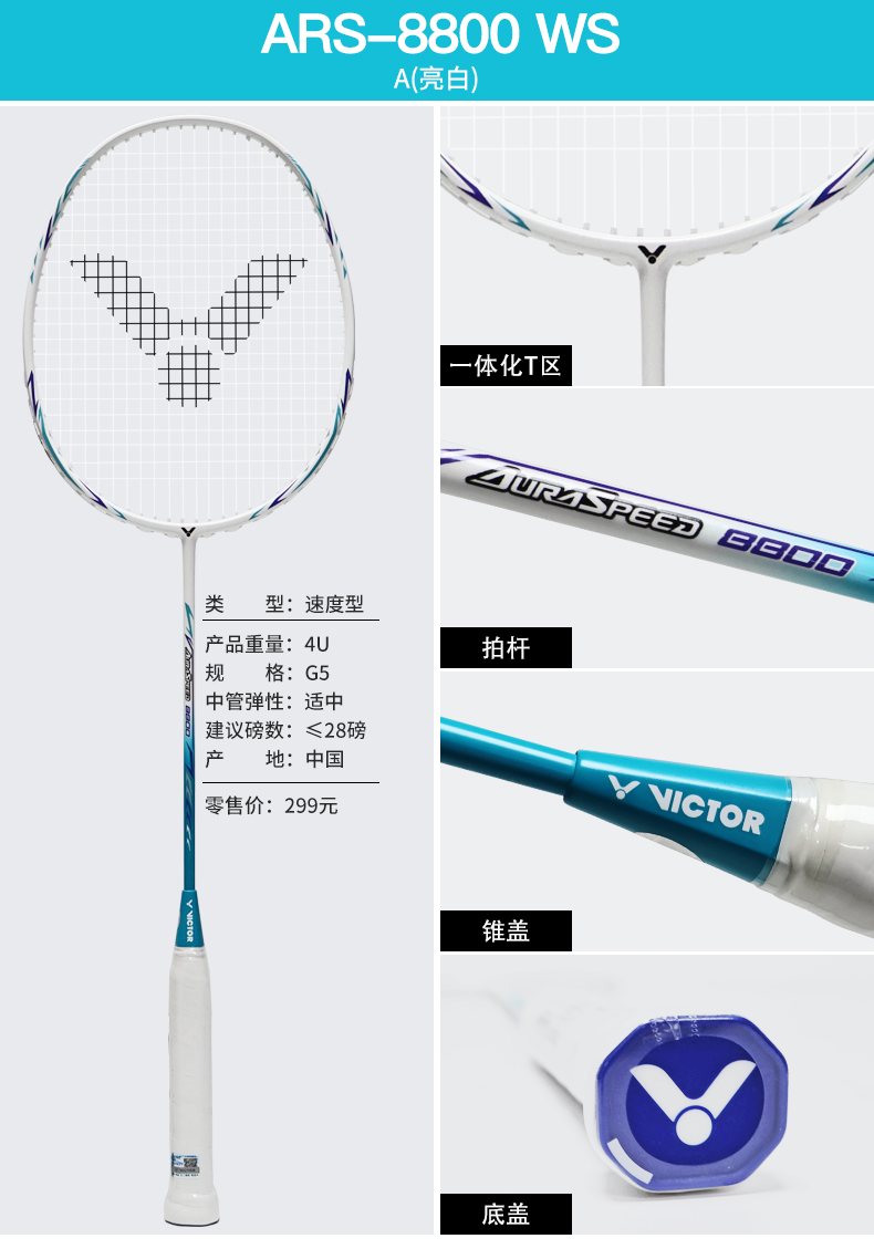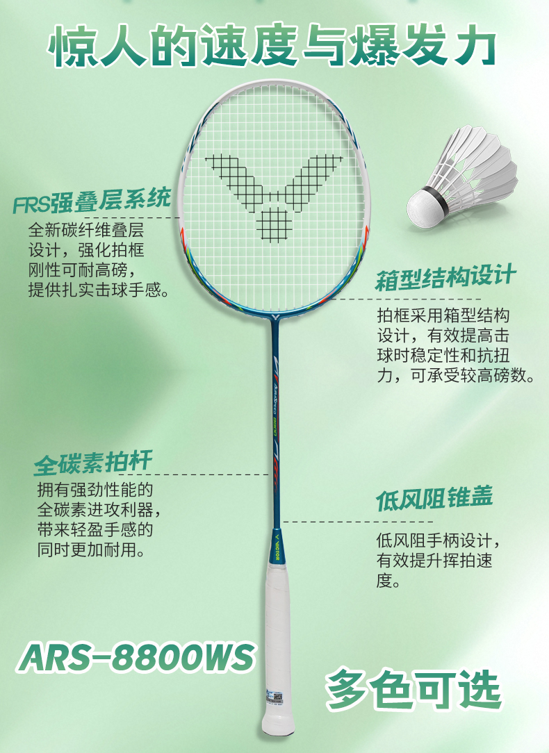 VICTOR威克多羽毛球拍神速系列ARS-8800 WS碳纤维高弹耐打训练球拍已穿线成品拍
