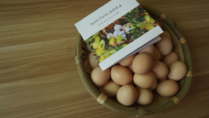 南野农场的鸡蛋新鲜,因为每颗鸡蛋都是当天捡的,打开蛋壳,蛋黄浑圆、蛋清明显得分成两部分,靠近蛋黄的浓蛋白呈水滴形、越靠近蛋黄越厚,外侧的稀蛋白呈水样铺开。检验鸡蛋新鲜度的最佳方法就是打开这枚鸡蛋,蛋黄和浓蛋白高度越高越新鲜,南野农场的土鸡蛋就很好地呈现了鸡蛋最新鲜的状态。