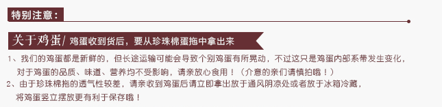 注意:由于鸡蛋都是最新鲜的,现捡现卖,平时不备陈货,所以下单后10天内发货,介意的亲慎拍!