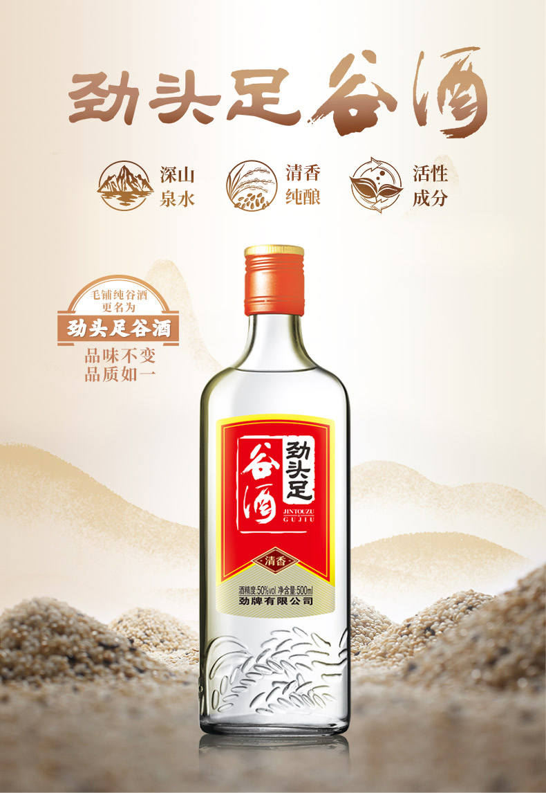 毛铺 劲头足 谷酒(原毛铺纯谷酒)50度 500ml 清香型 光瓶装 自饮小酌 聚餐 家庭聚会