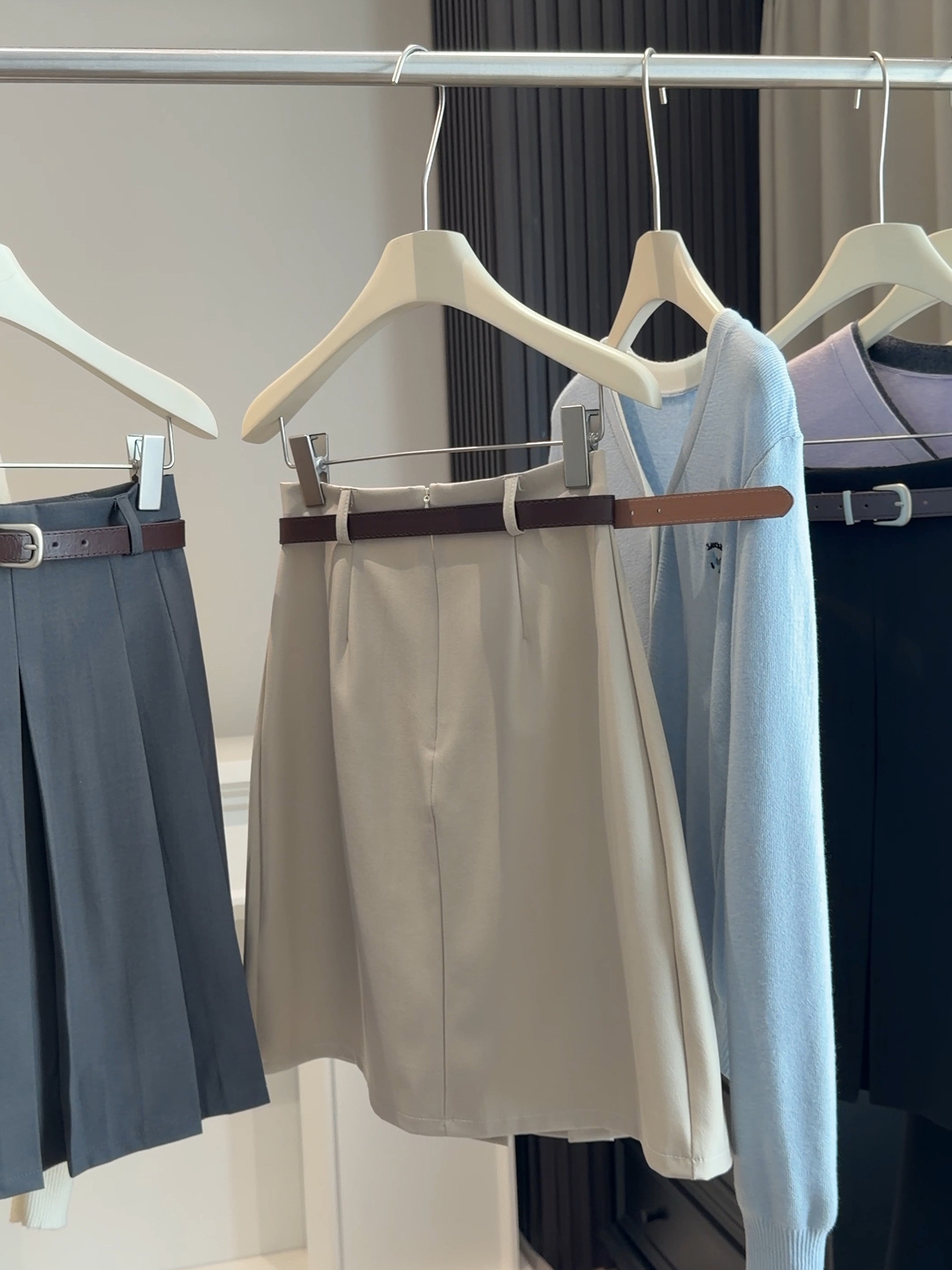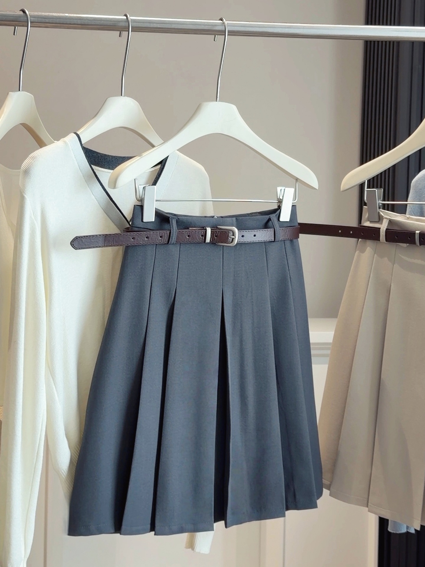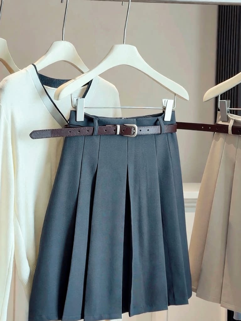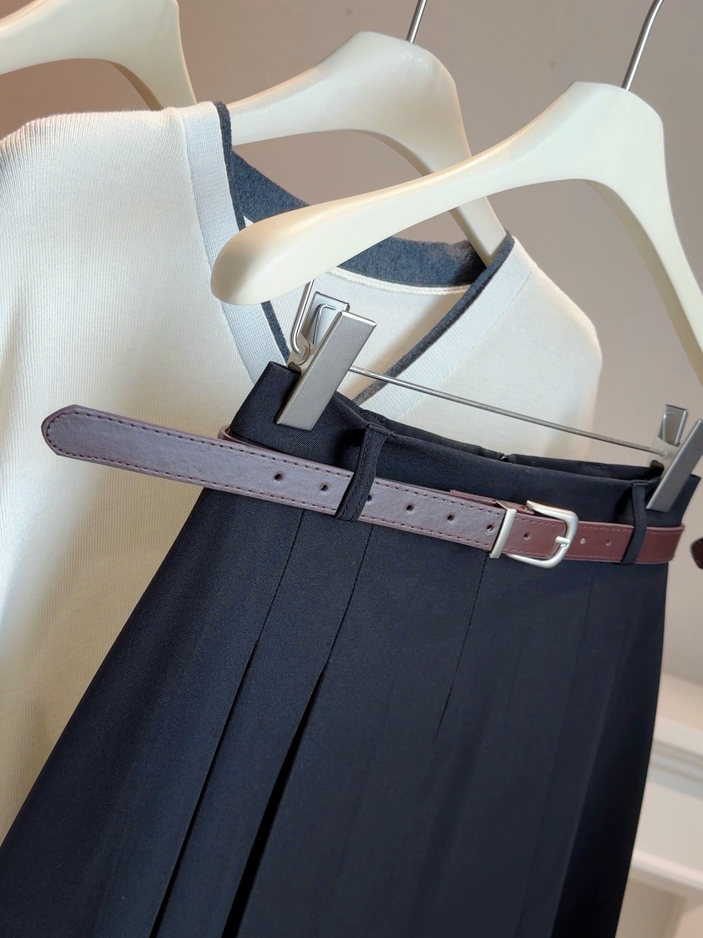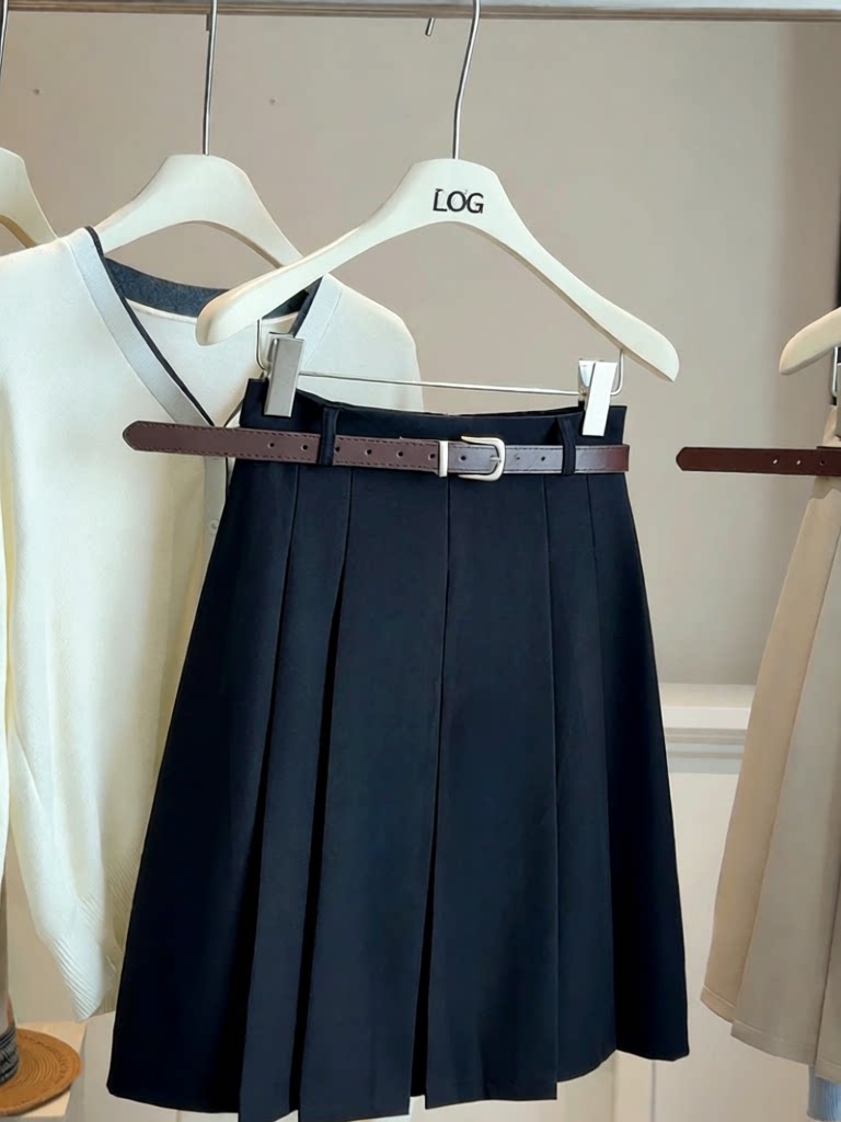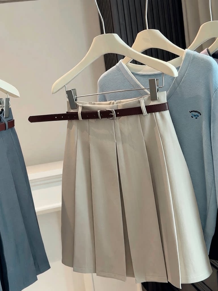 百褶半身裙送腰带!韩系学院风!2026女春夏新款高腰显瘦百搭遮肚子西装中裙!