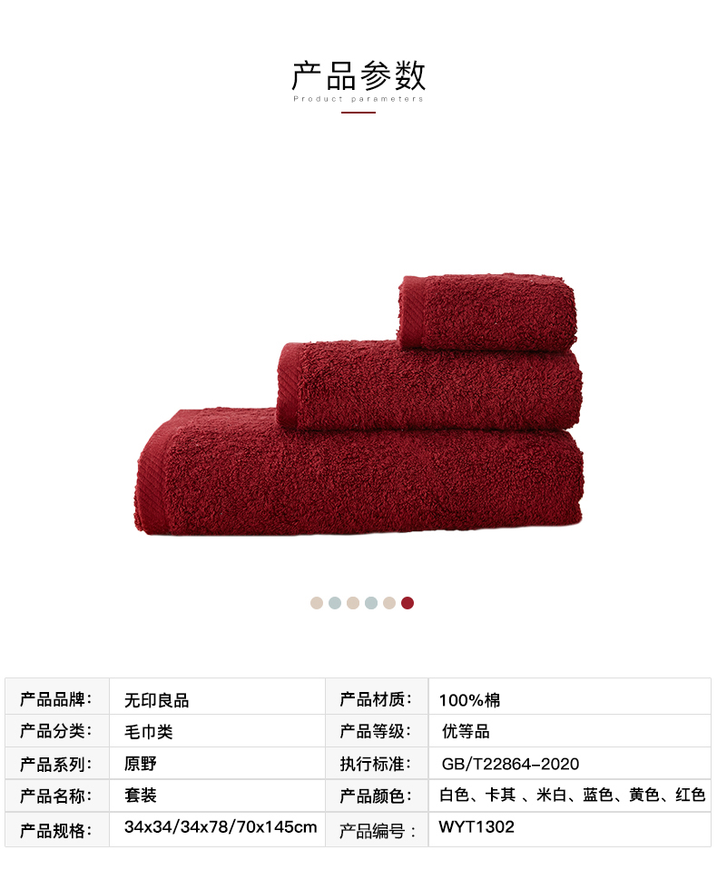 原野系列方面浴套装 毛巾套装 舒适纯棉 自然健康 色彩鲜亮 无印良品