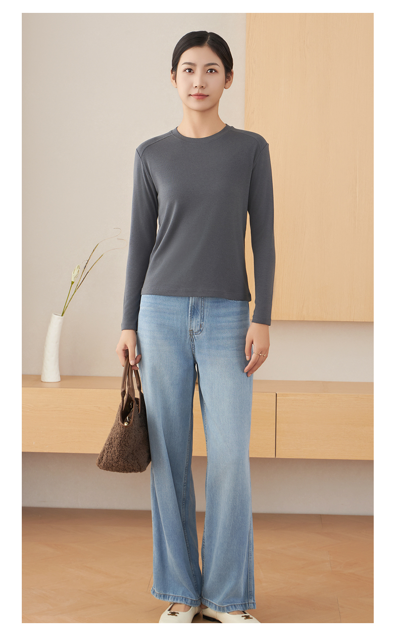 weyo秋冬女士修身上衣羊毛养肤衣拼肩打底衫A32307 商品图4