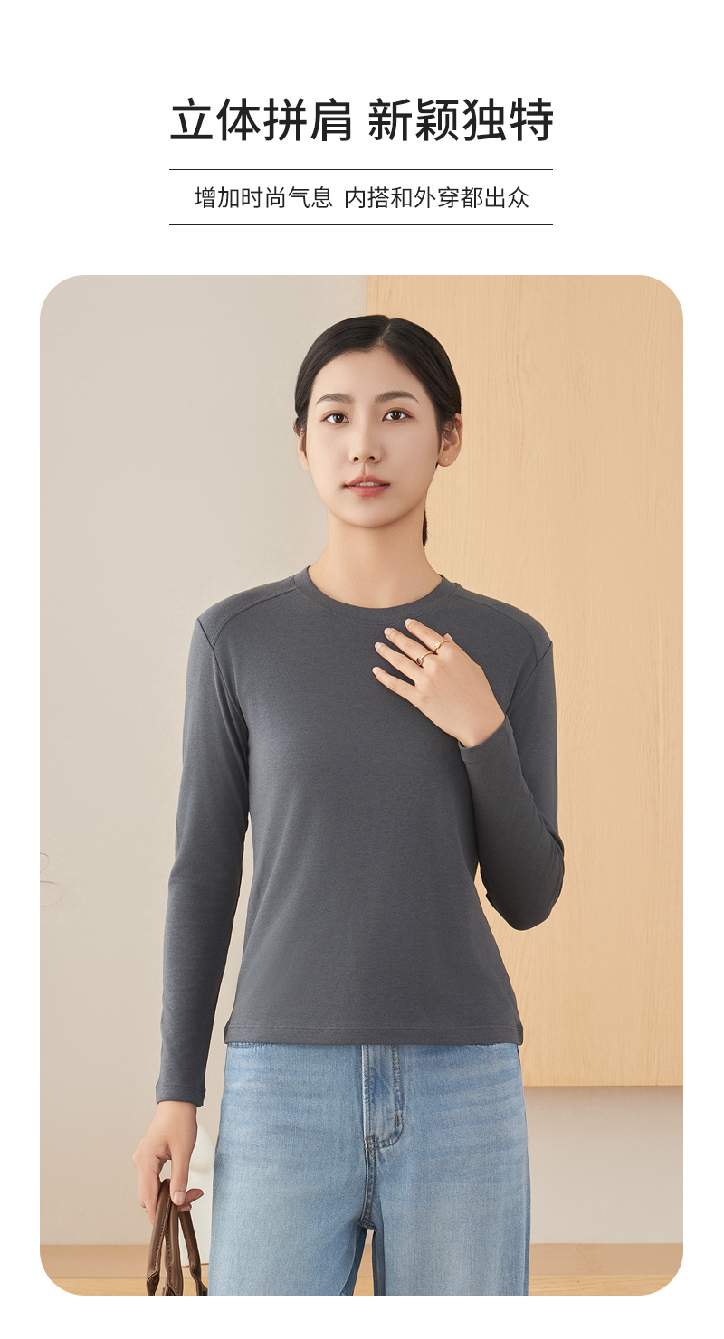 weyo秋冬女士修身上衣羊毛养肤衣拼肩打底衫A32307 商品图3