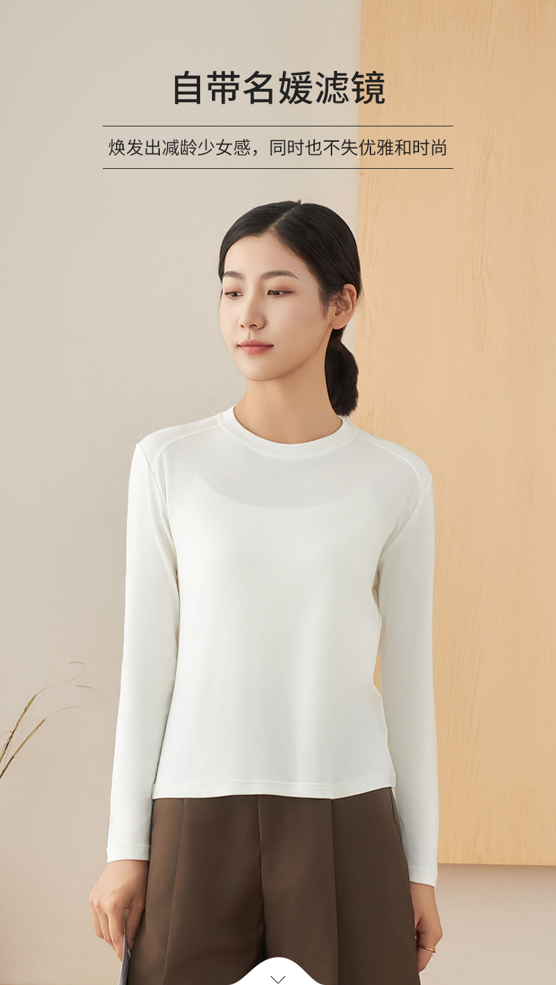 weyo秋冬女士修身上衣羊毛养肤衣拼肩打底衫A32307 商品图0