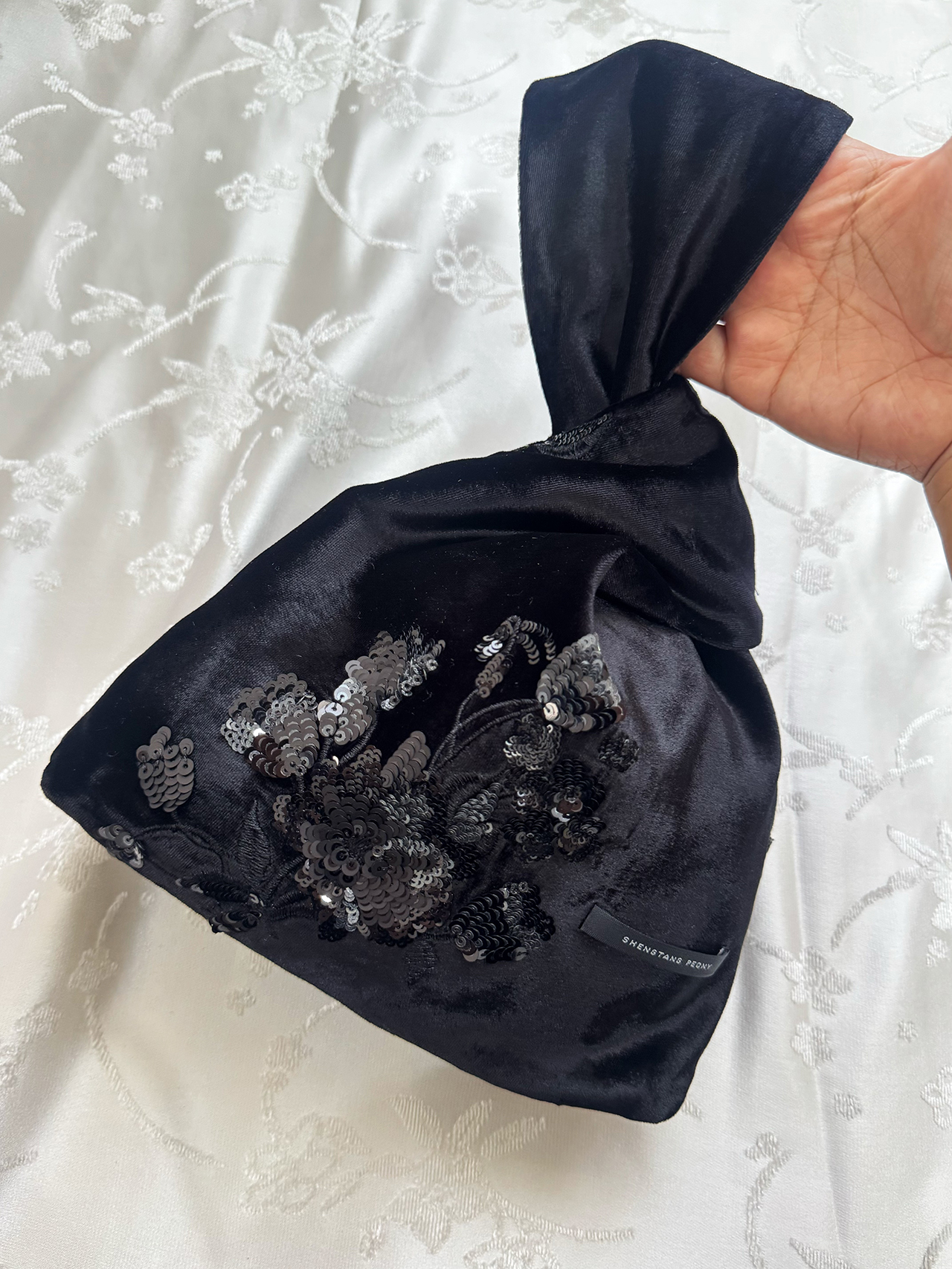 盛唐牡丹| 真丝丝绒串珠手拿包-黑色