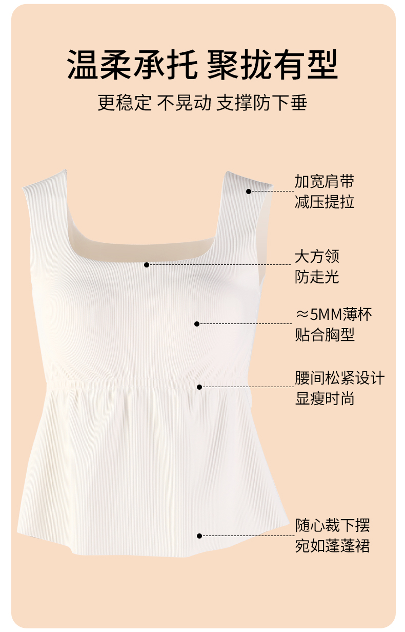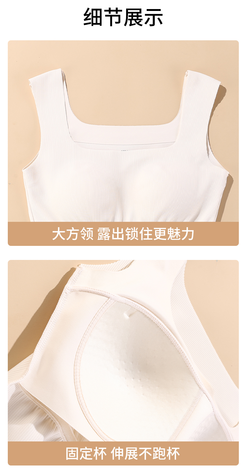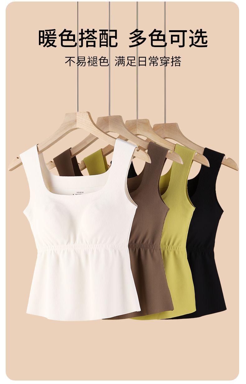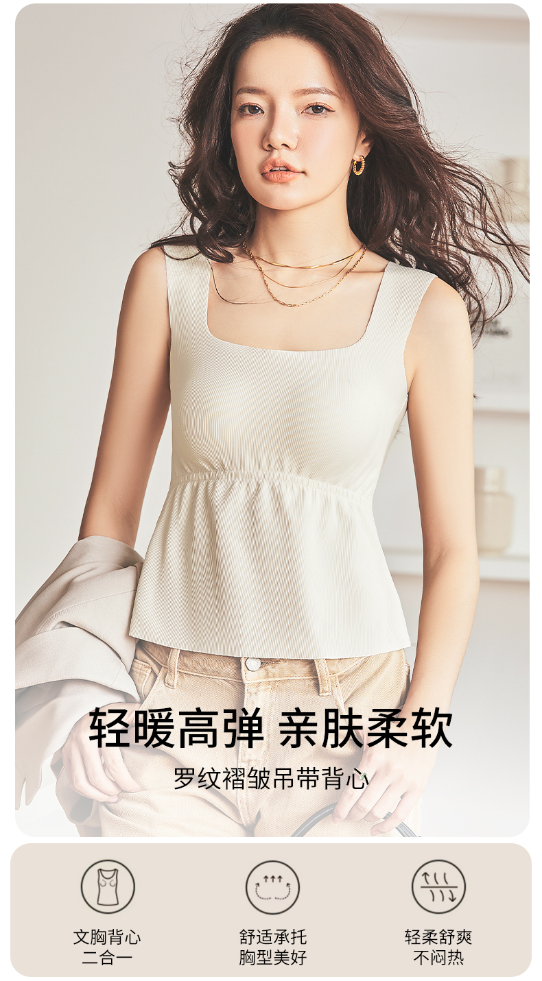 雅黛丽保暖背心女款带胸垫一体内穿打底吊带秋季方领无痕无袖上衣