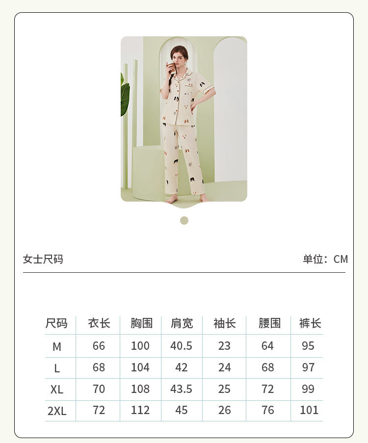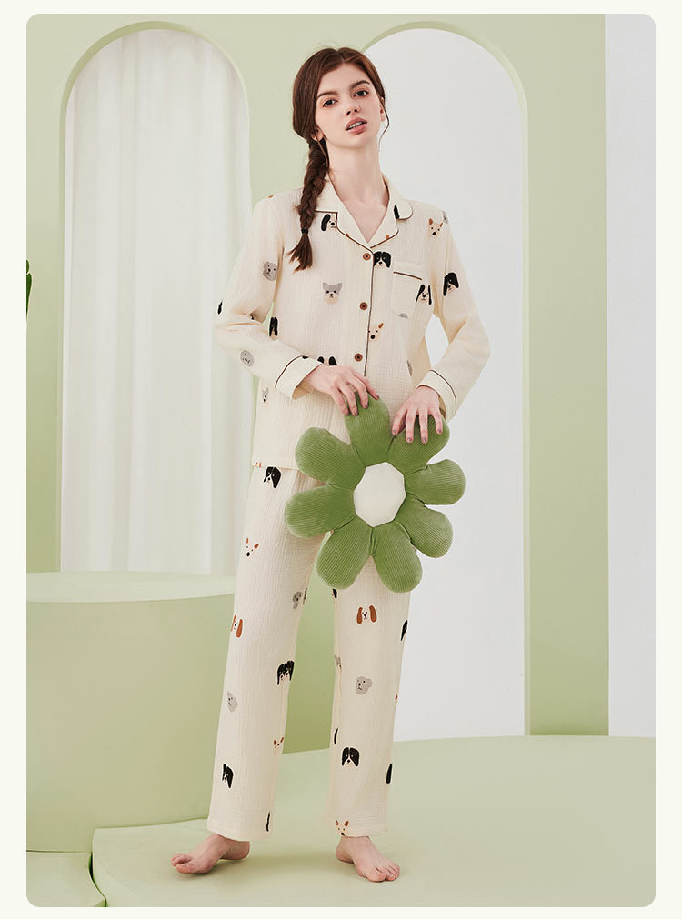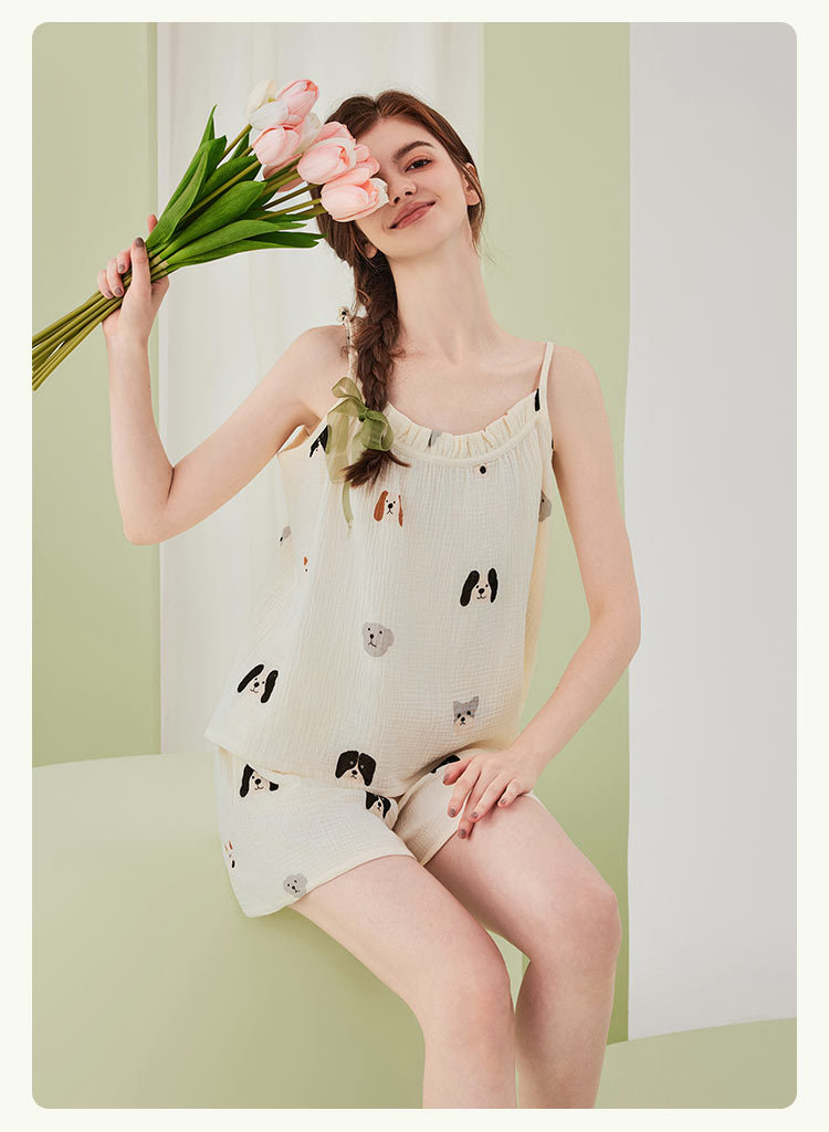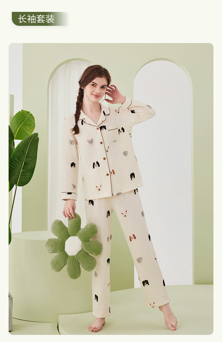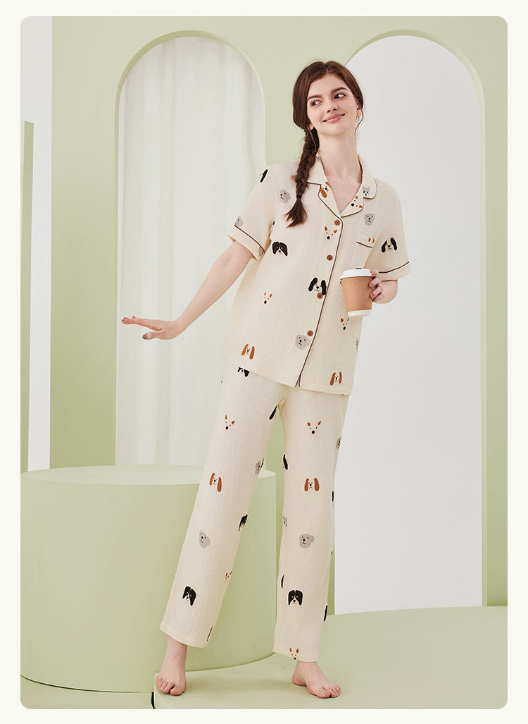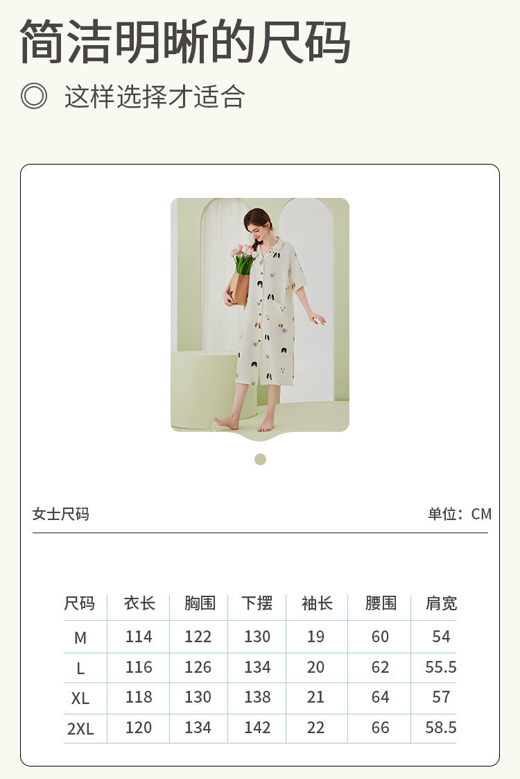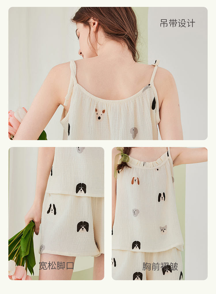 A类纯棉睡衣裙女夏季双层绉布可爱萌狗印花全棉睡衣家居服可外穿