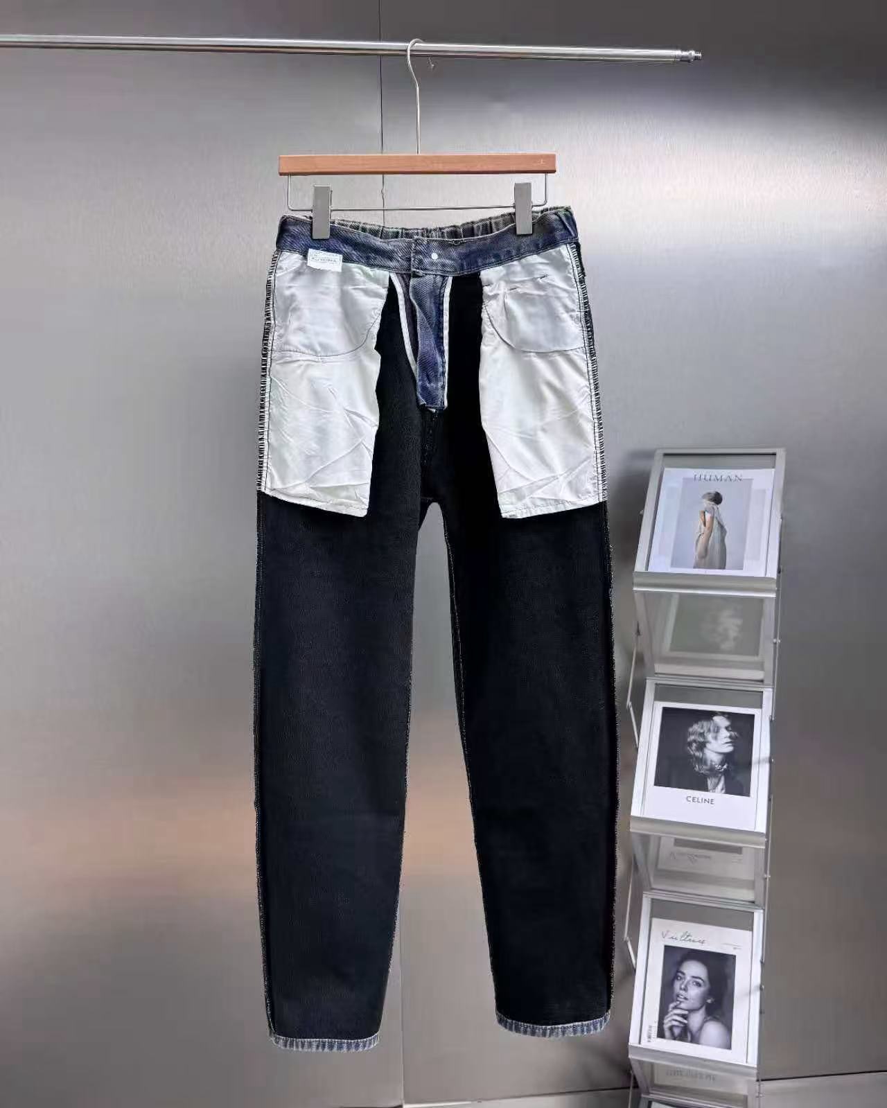 版型为直筒垂坠剪裁,精准切割腰线至脚踝的比例,视觉上拉长腿线条。后口袋采用弧形设计,袋口深度6cm,内衬加密网布防止物品滑落,口袋边缘饰有同色系明线,增添工装风细节。最引人注目的是裤脚的包边工艺,针脚细密整齐,每一处细节都彰显高端品质。这条加绒加厚直筒高弹力牛仔裤