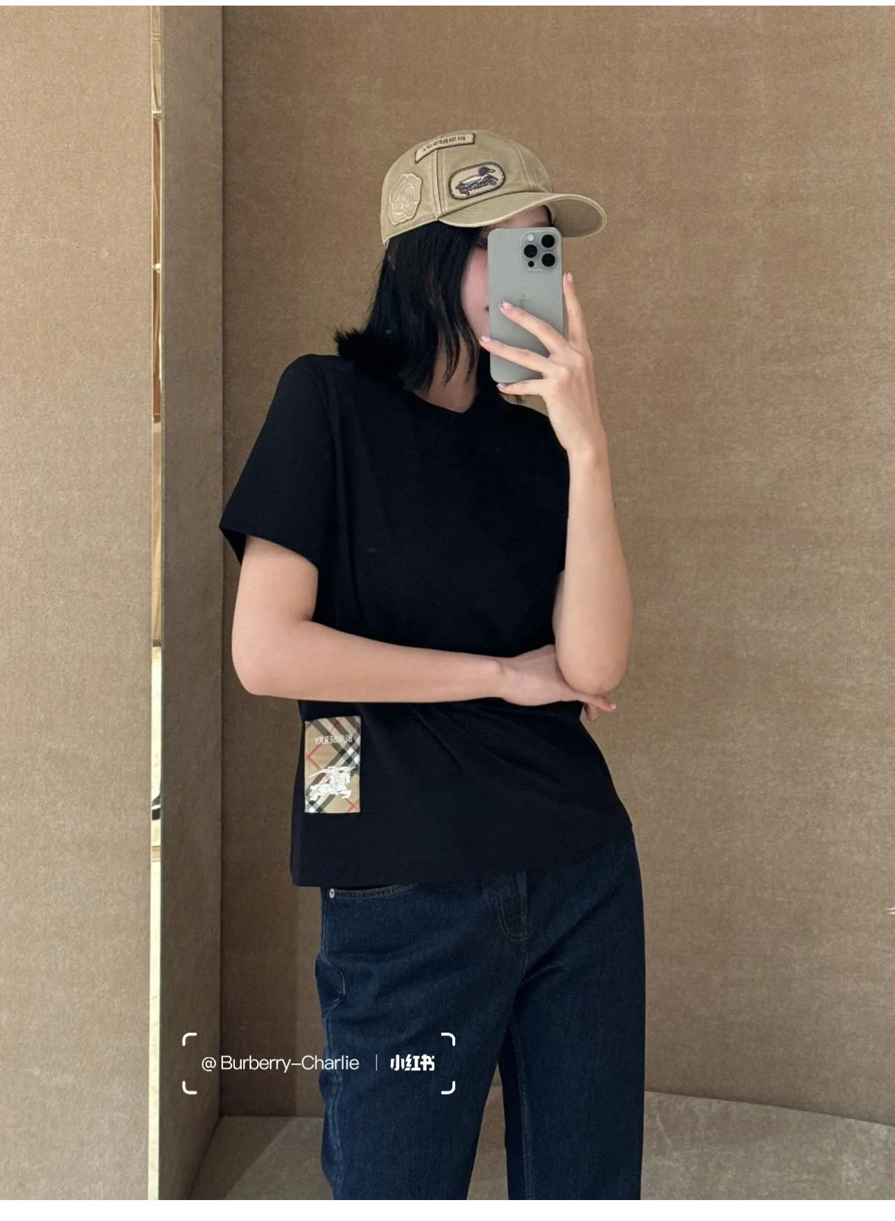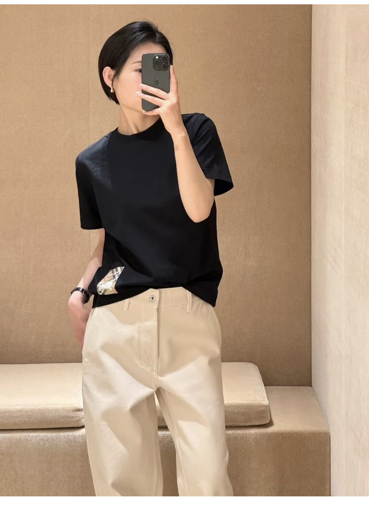 B.B.R 格纹徽标 丝光 圆领短袖体恤
