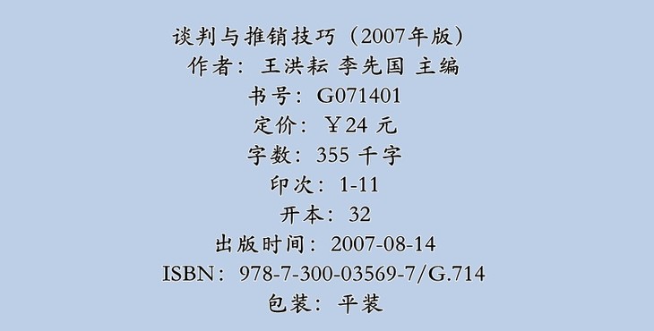 自考 谈判与推销技巧 0179(2007年版)王洪耘 李先国 主编 人大出版社