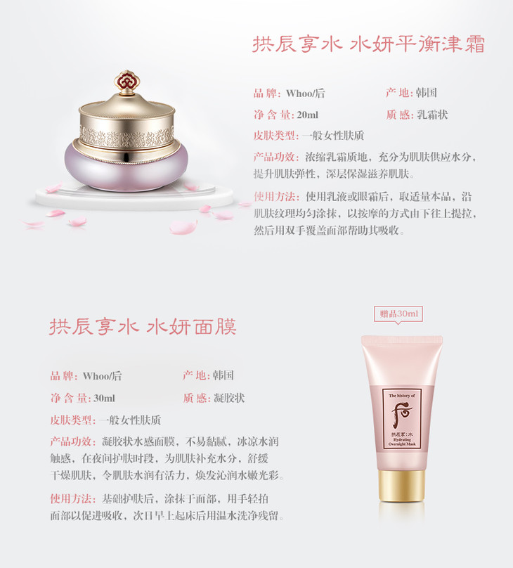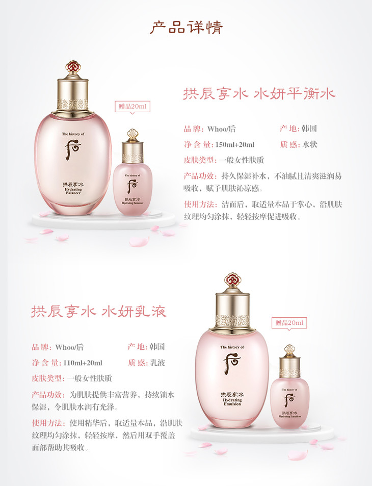 【领20元券再下单】韩国 whoo后 拱辰享水妍水乳套装 保湿补水亮白 到27年4-6月 版本随机 保税区包邮直发