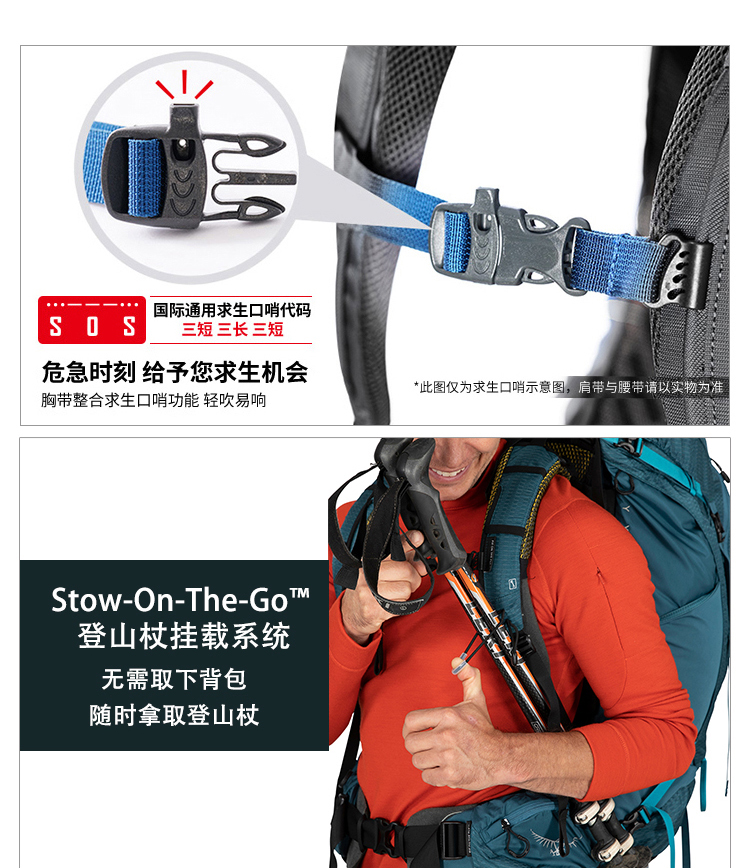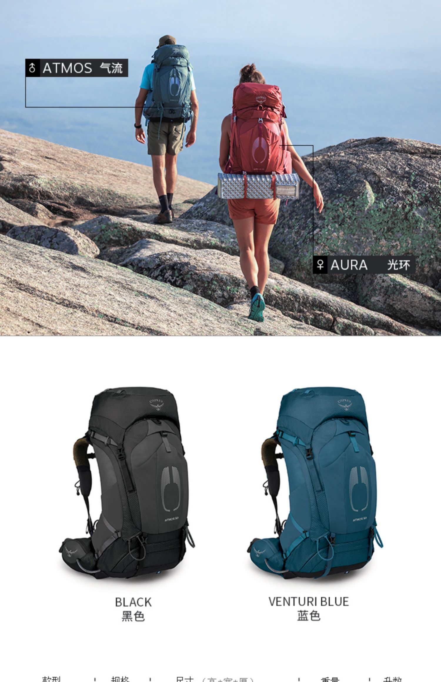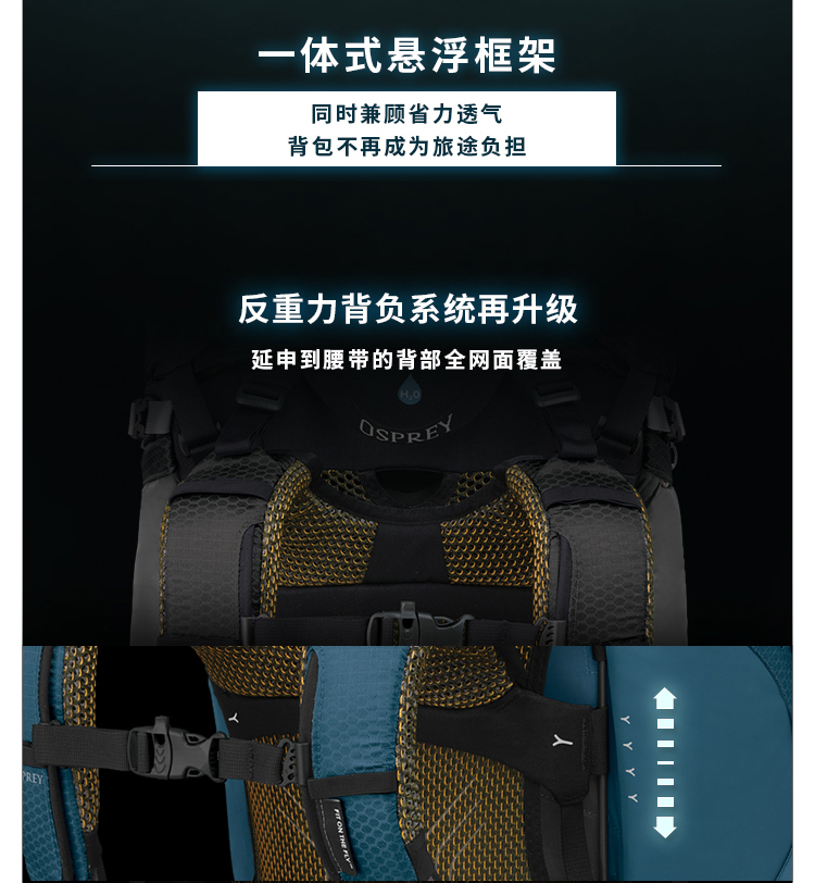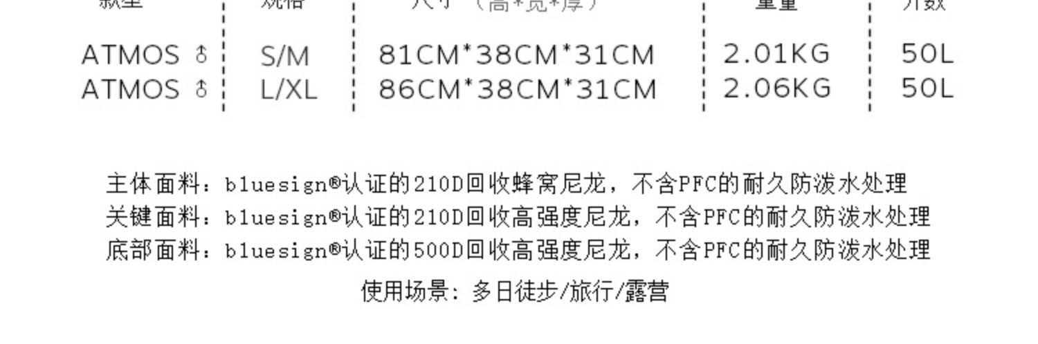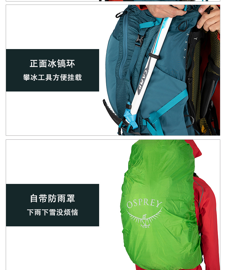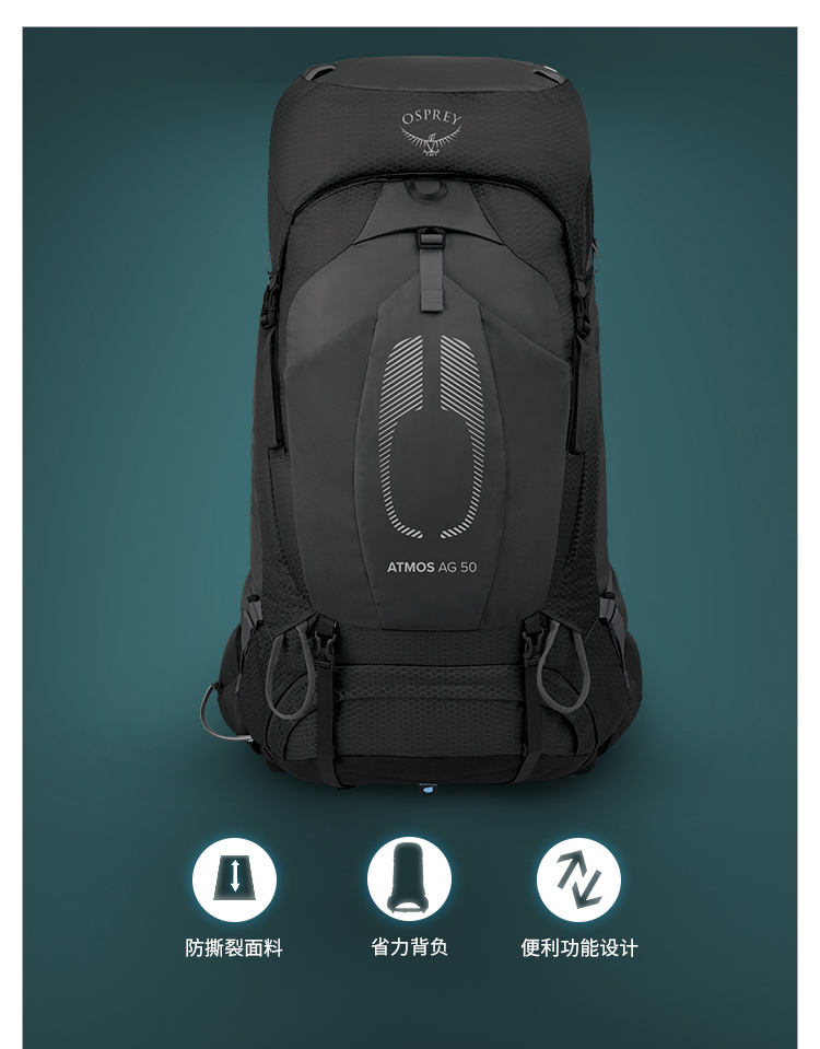 Osprey Atmos AG 气流50升户外登山包男旅行大容量双肩包22年新款
