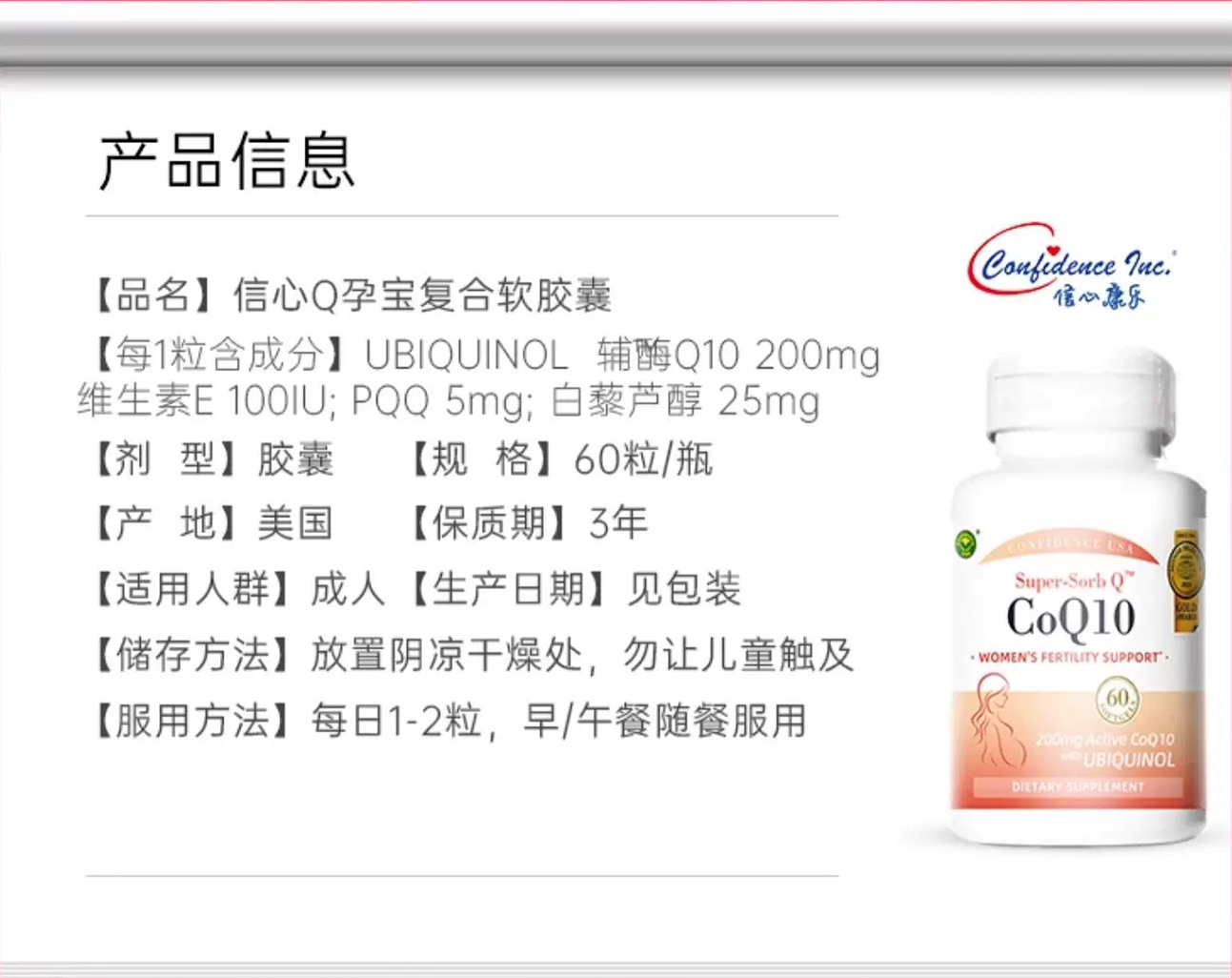 信心康乐辅酶q10孕还原型辅酶胶囊泛醇美国原装进口Q孕宝
