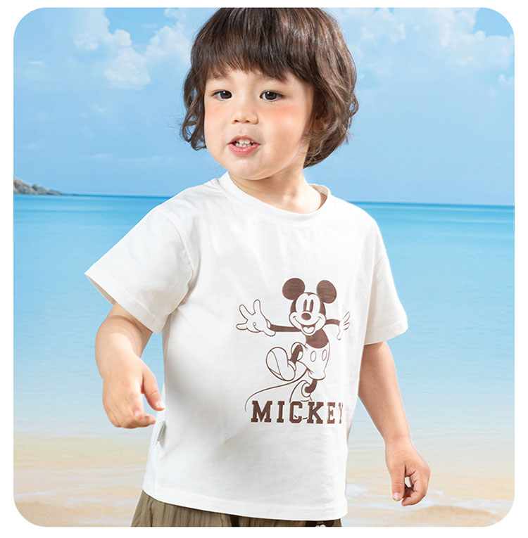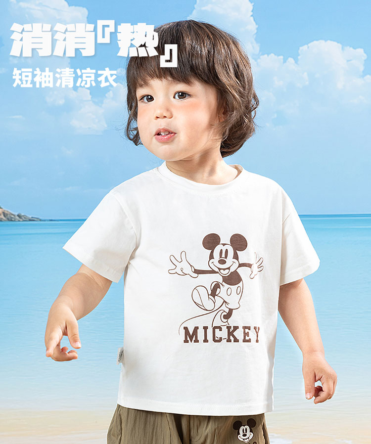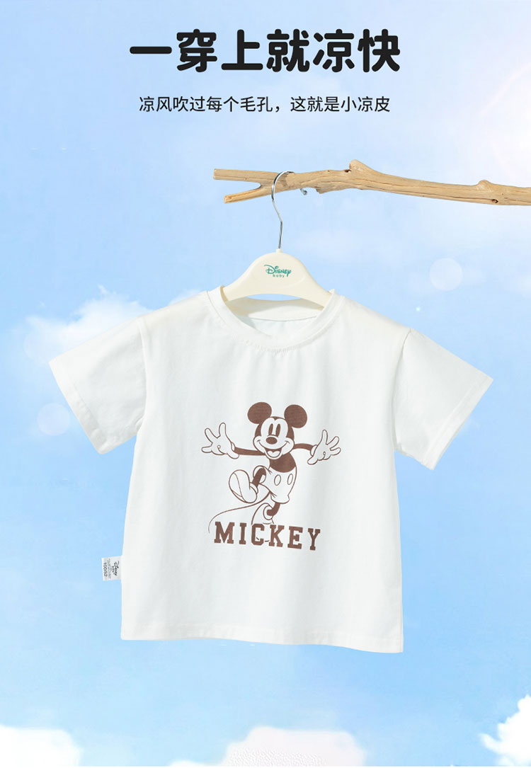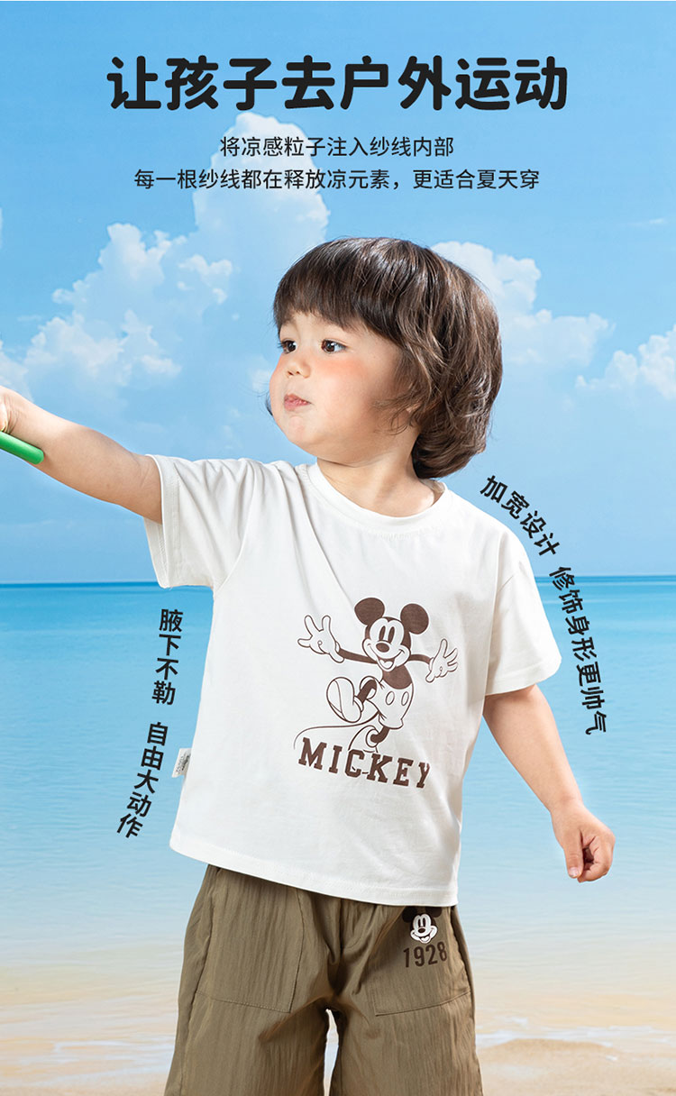 迪士尼【米奇凉感T恤】2025夏季新款男童冰感短袖T恤轻薄透气上衣ZD2ES039*