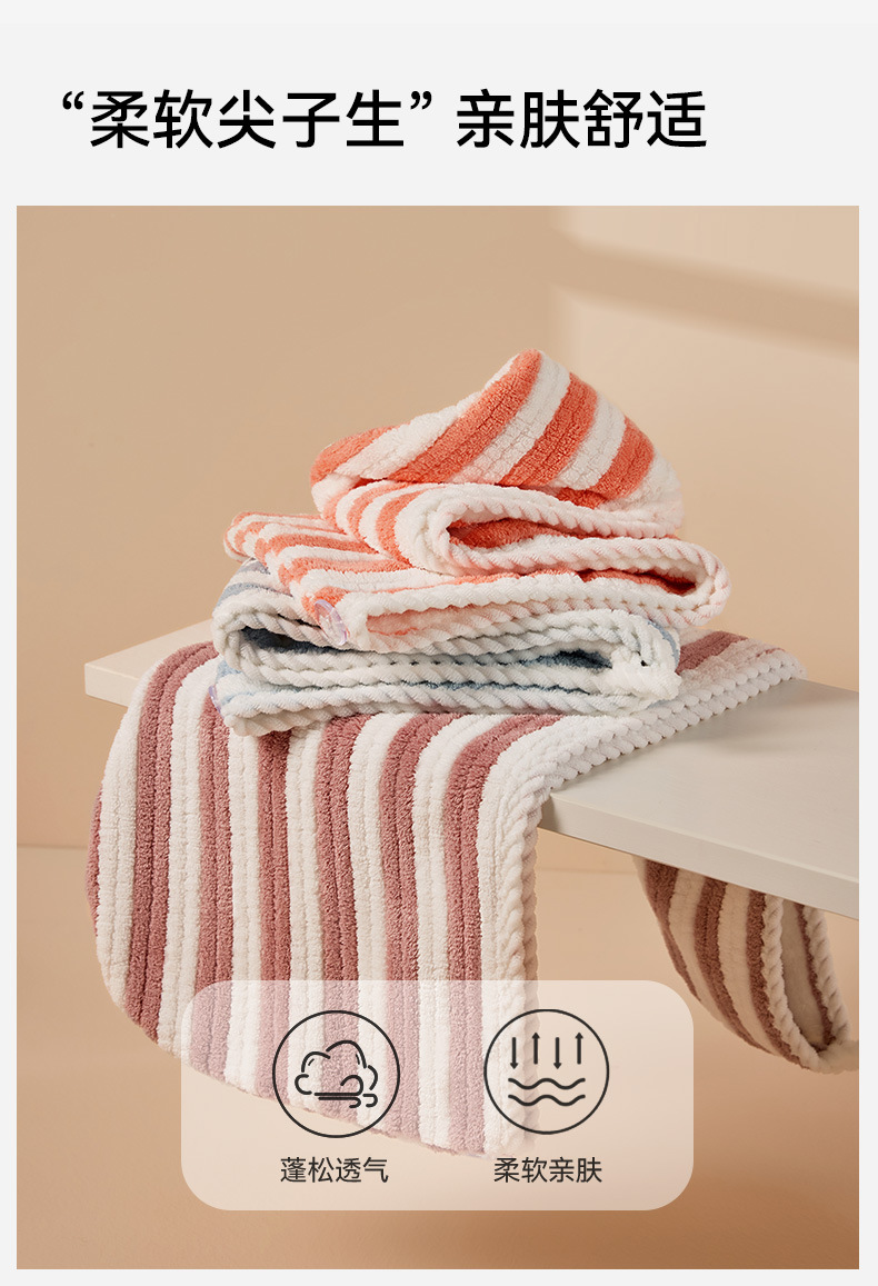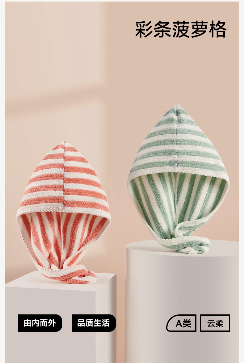 三利毛巾新款彩条菠萝格干发帽单层吸水包头毛巾洗头条纹浴帽吸水干发帽