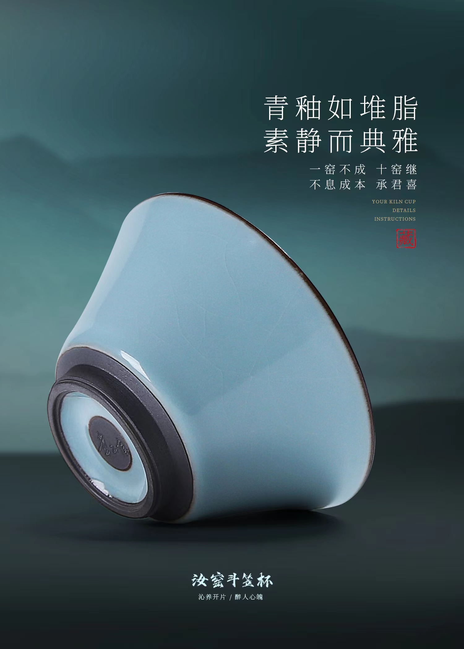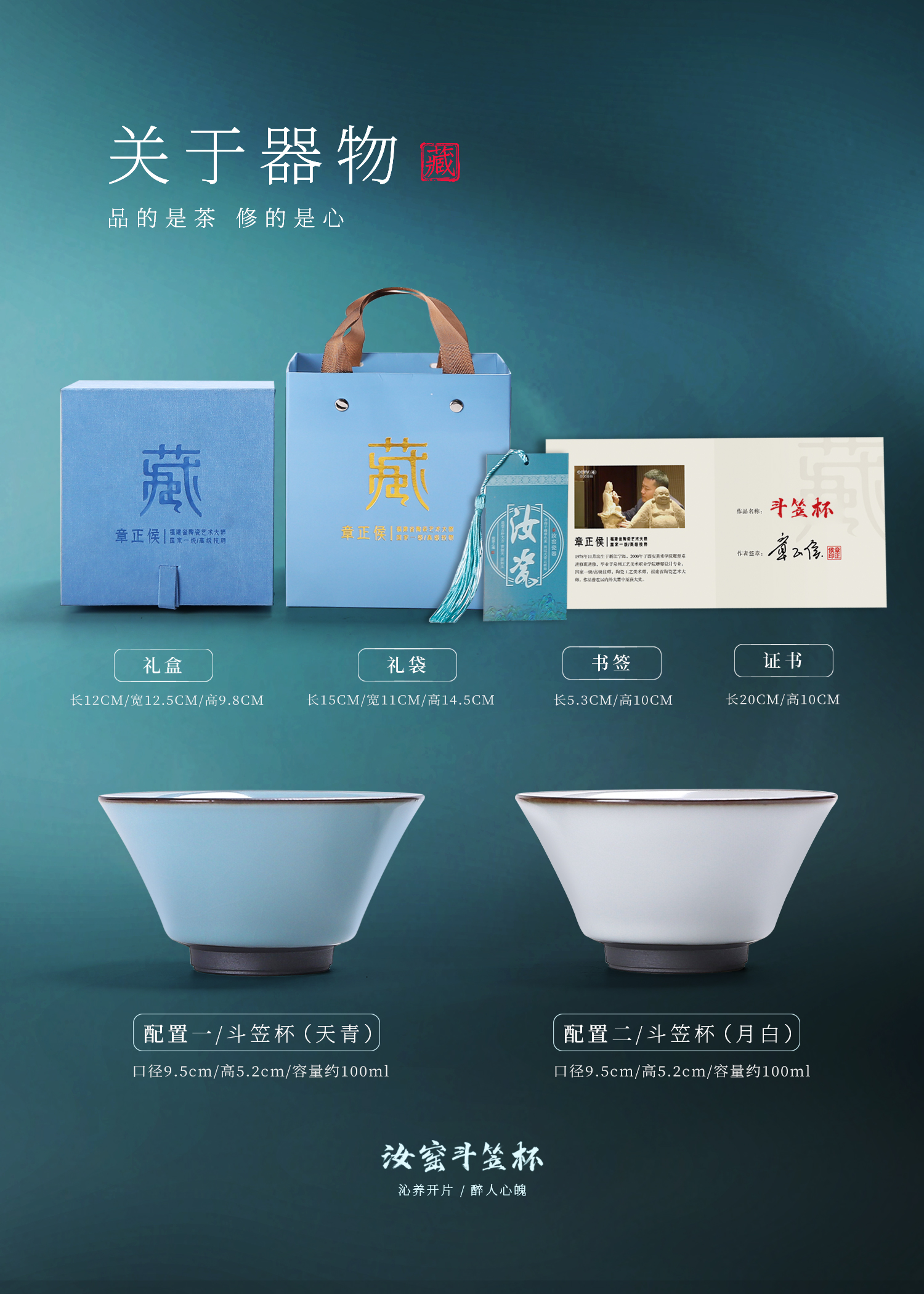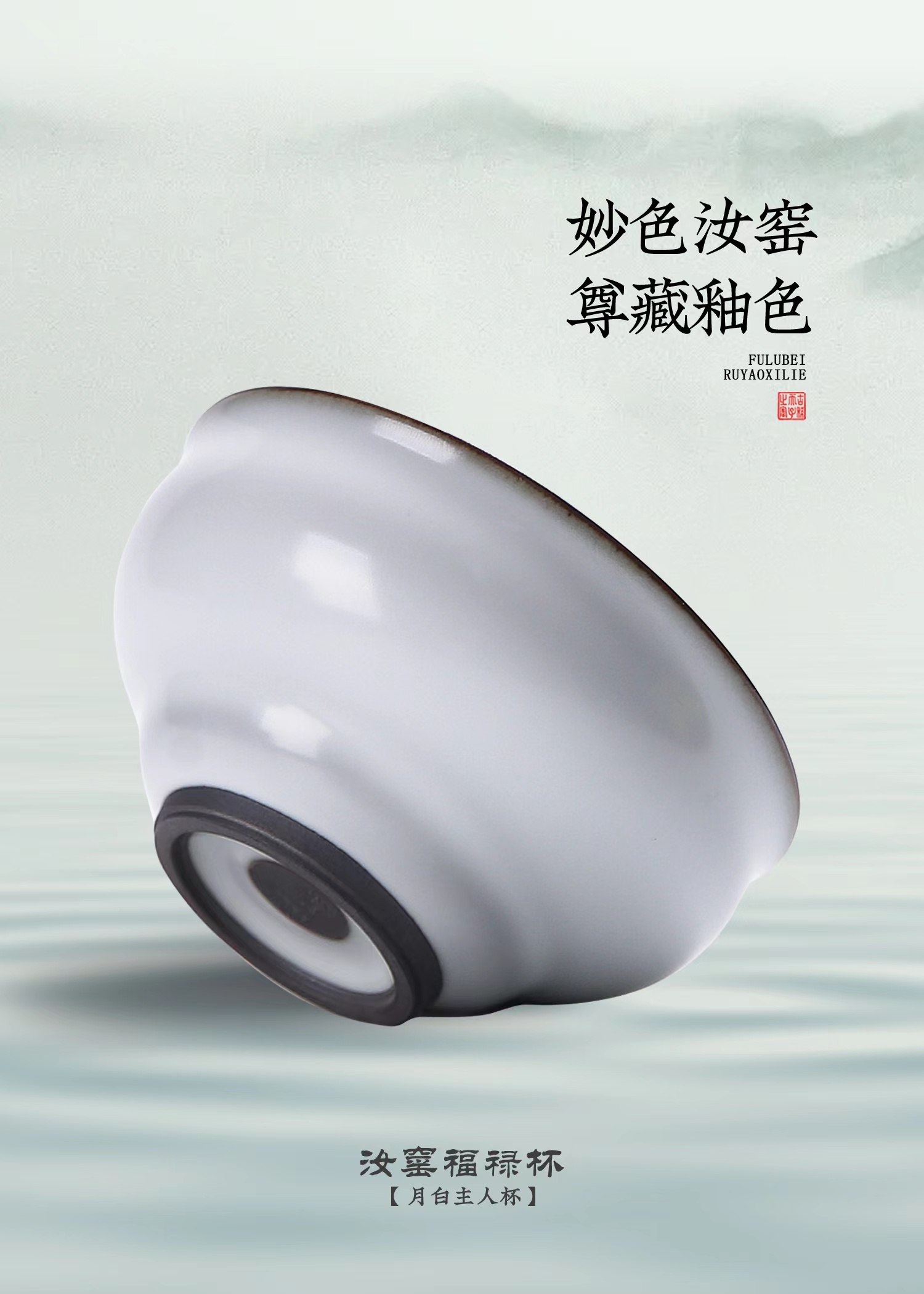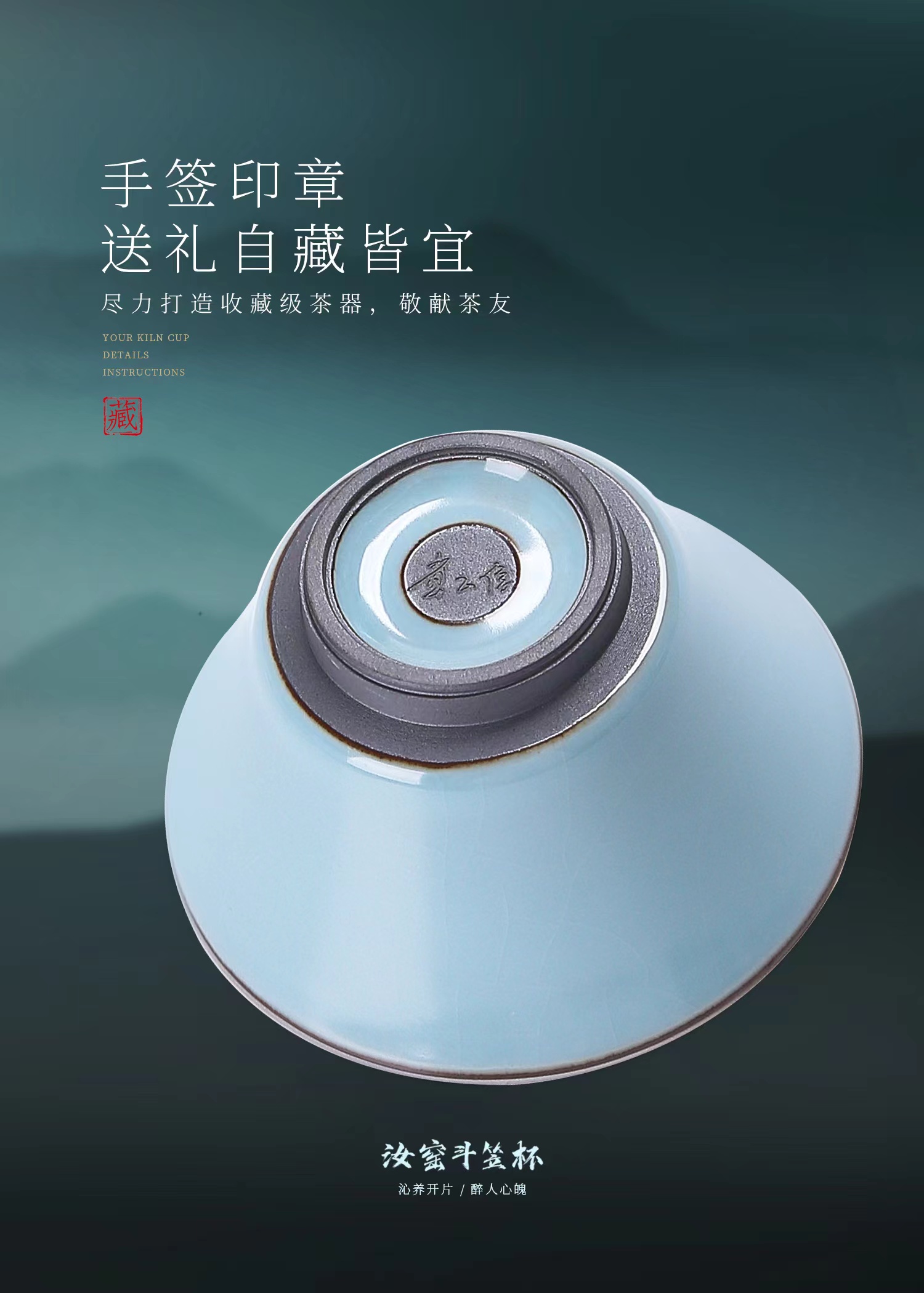 【传承手工 古法制瓷】汝窑斗笠杯/汝窑福禄杯 天青主人杯、月白主人杯,作者签章 品质保证,珍藏品鉴 送礼臻品
