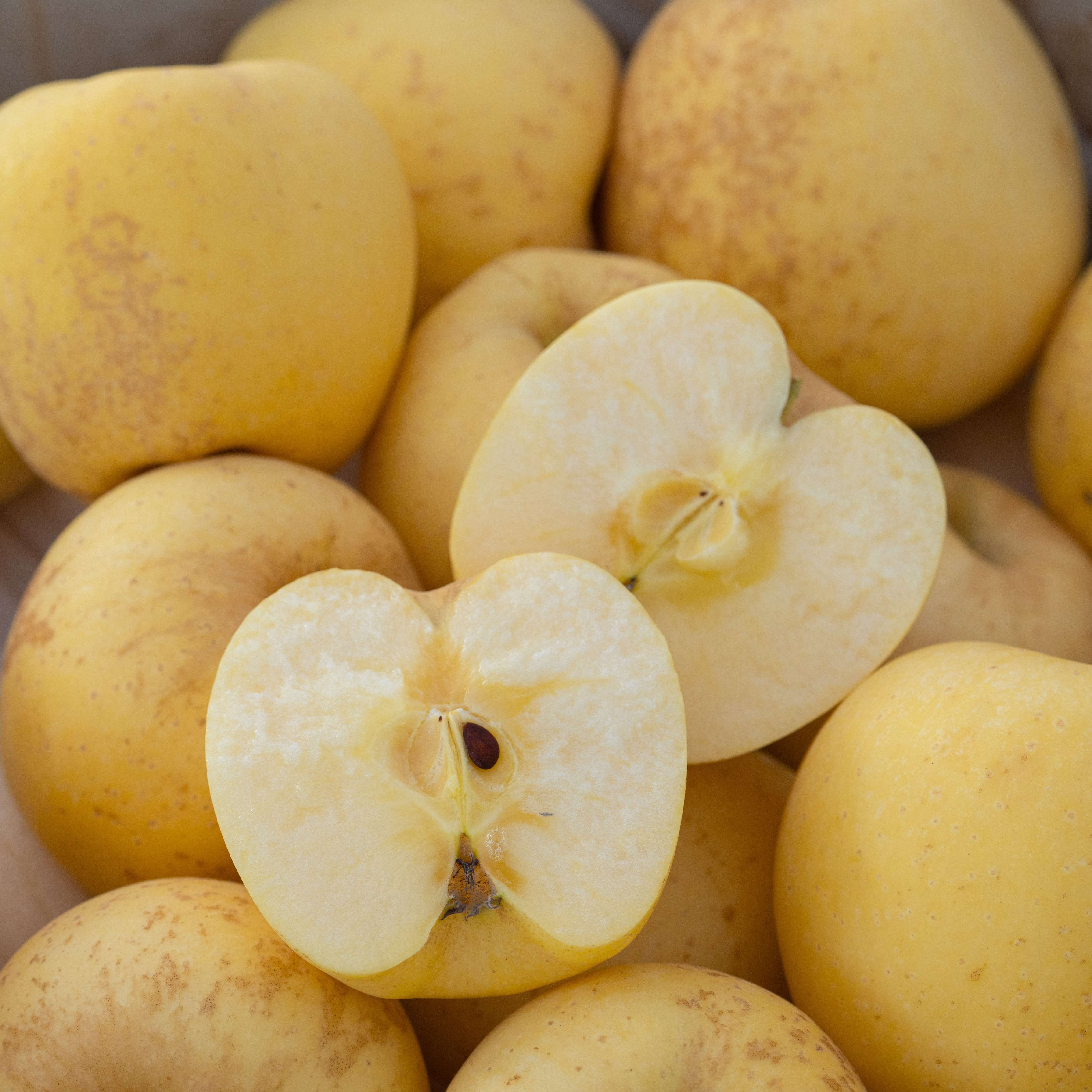 金果,是由日本前岩手大学农学部教授横田清氏用「金帅」(又名‘金冠’,‘黄元帅’,‘黄香蕉’等)自然杂交种子播种选育的品种,前几年引进烟威地区种植,最大特点就是:纯甜