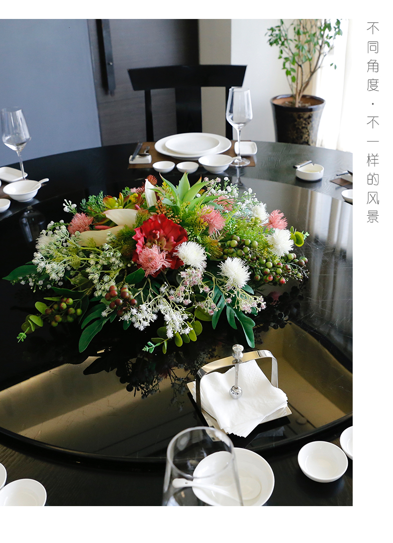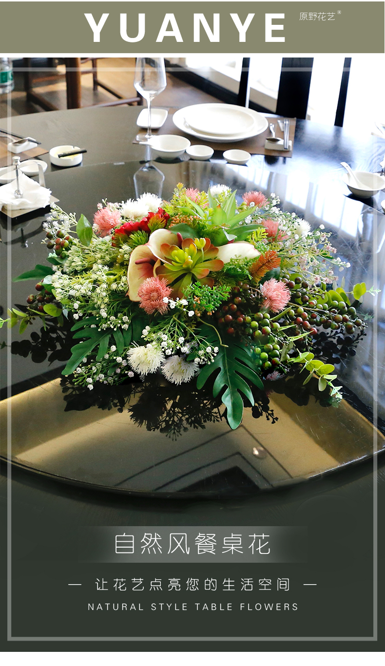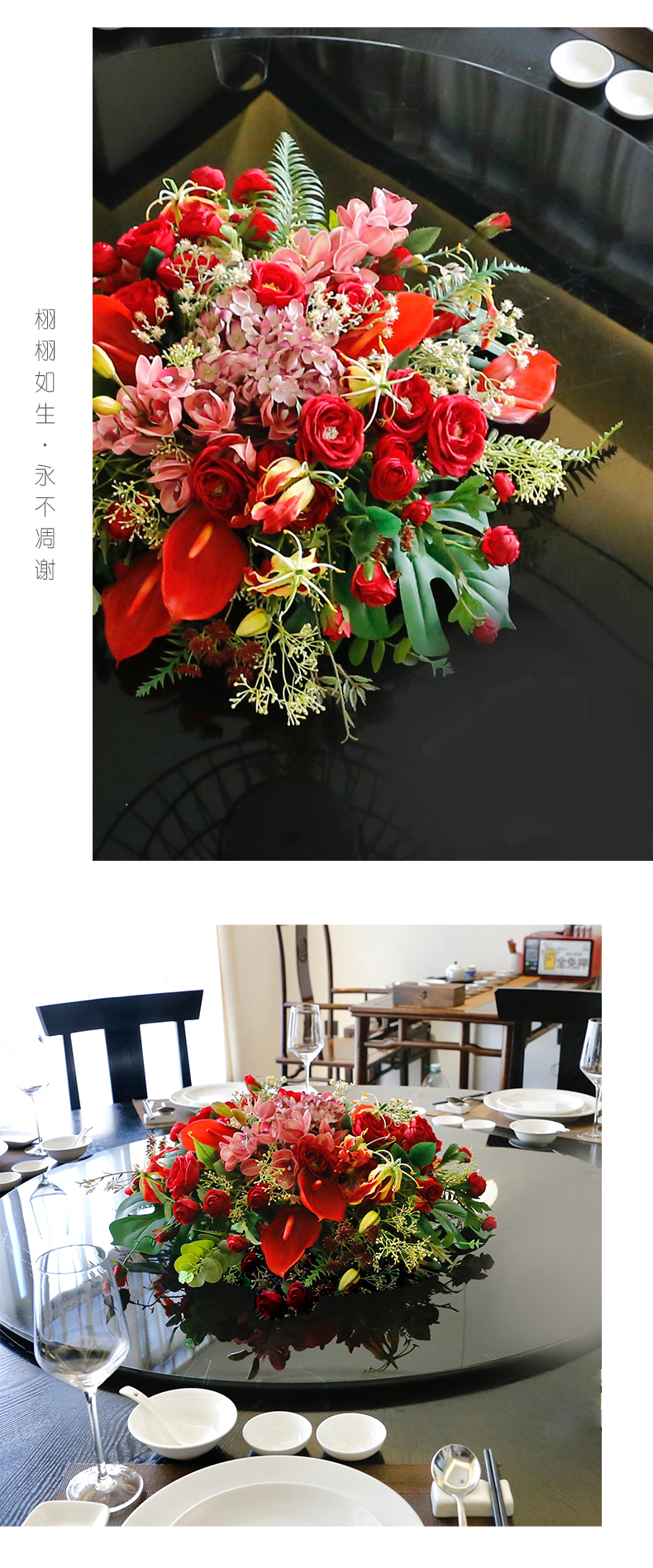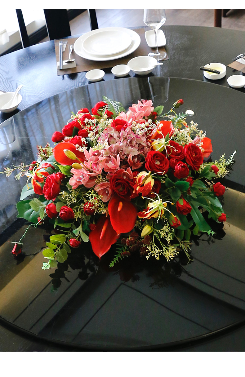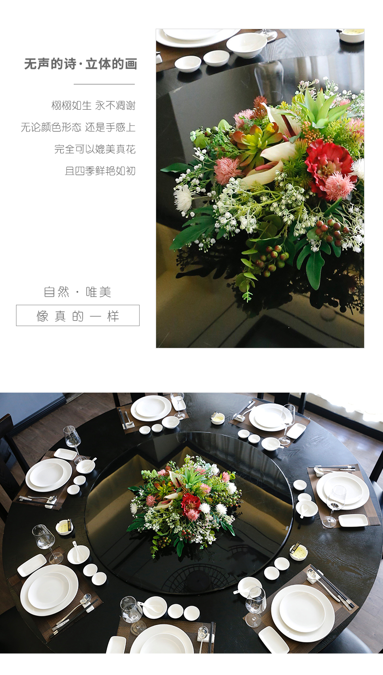 酒店餐桌花大圆桌中间转盘摆花饭店餐厅包厢高端仿真花装饰花摆设