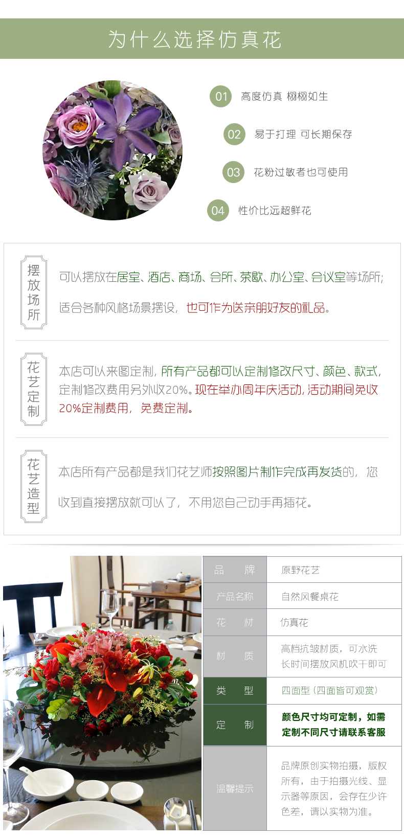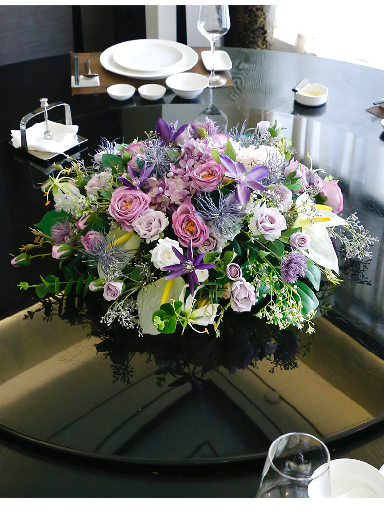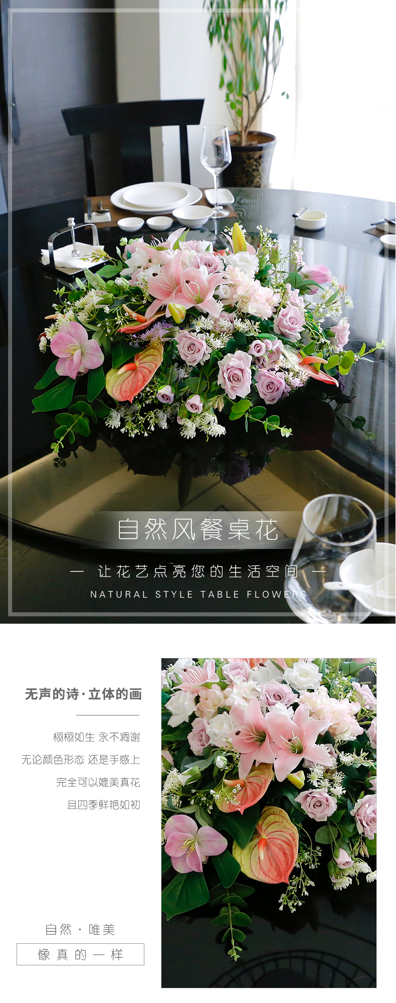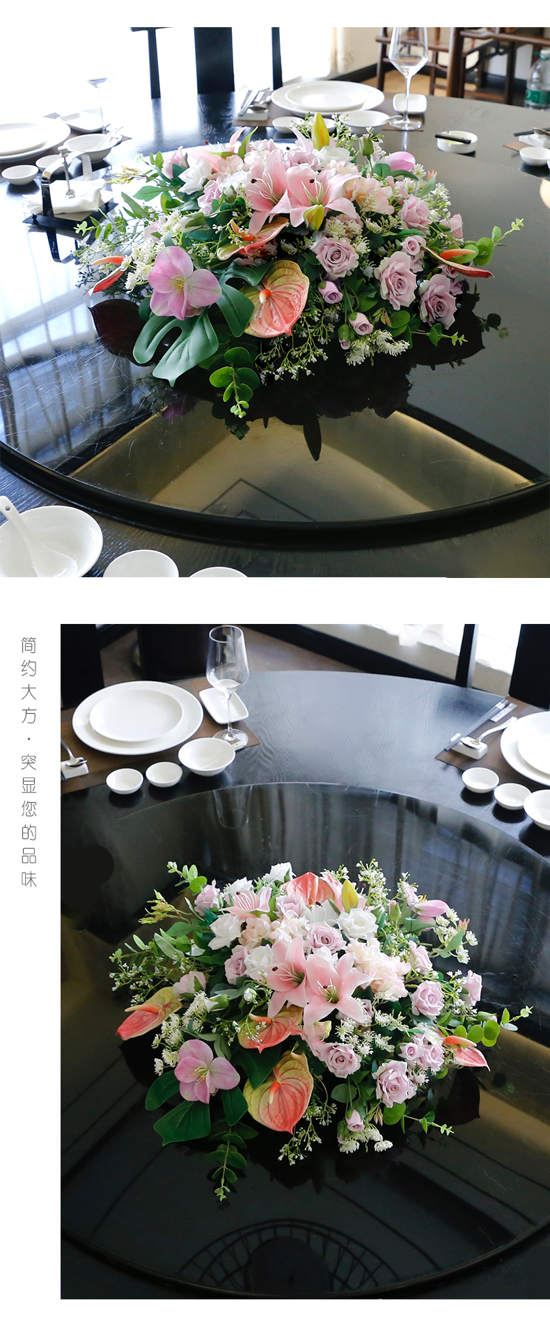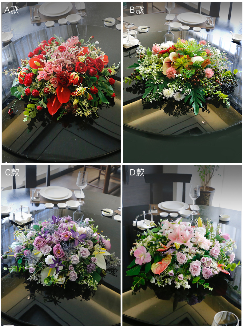酒店餐桌花大圆桌中间转盘摆花饭店餐厅包厢高端仿真花装饰花摆设