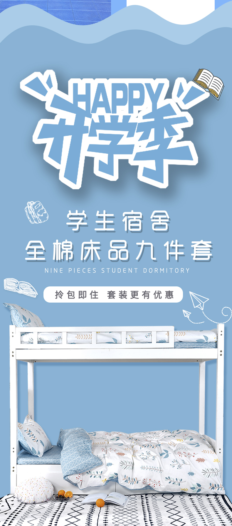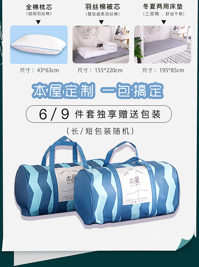 床单款-本屋创品学生纯棉九件套集合(男款)——床垫6cm+90*190cm专属