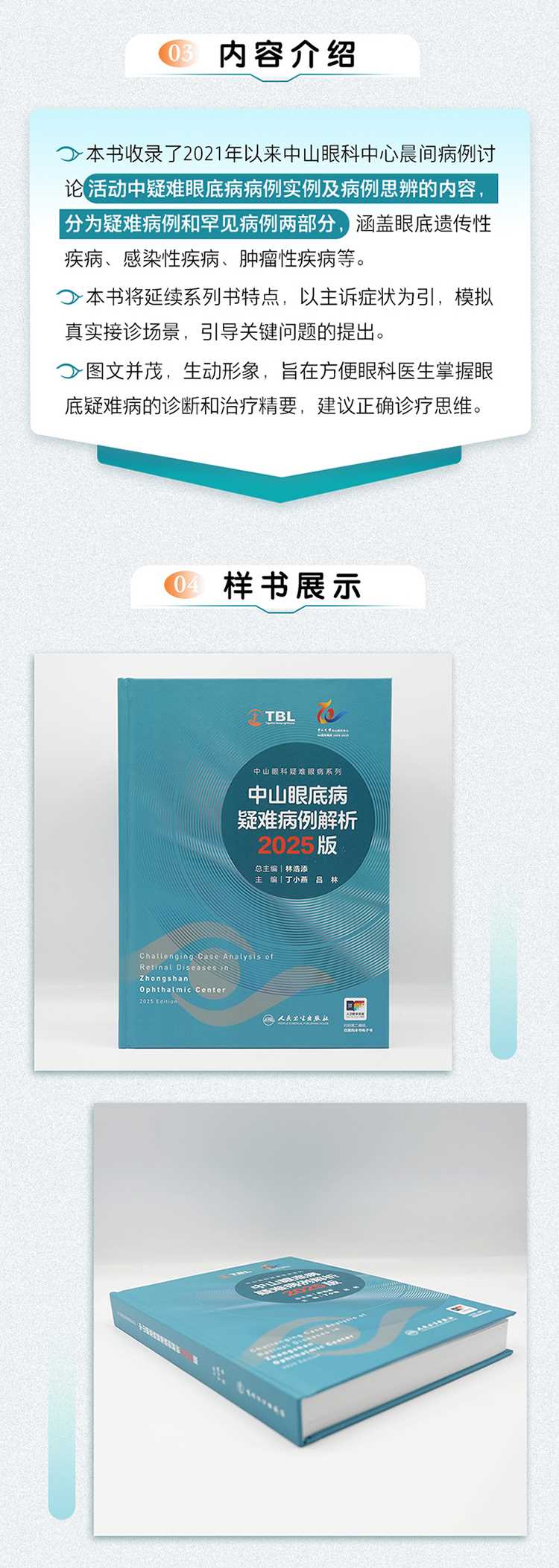 1.【符合临床诊疗思维】以主诉症状为题,从主诉及裂隙灯下表现切入,将每个病例的问诊、辅助检查、诊断思辨、疾病特点、鉴别诊断、治疗方案的选择及随访的诊疗过程完整呈现出来。贴近实际临床诊疗过程,提升读者最核心的诊疗分析能力。2.【展现实际临床场景】以问答形式引导读者共同思考,建立实际临床场景,通过诊疗思辨,帮助年轻医生建立完整的眼底病诊疗思路,了解临床上每个步骤及选择背后的原因。3.【基于晨间讨论】基于中山眼科中心多年来坚持的晨间病例讨论,更体现实际讨论中年轻医生对诊疗的疑问与困扰。