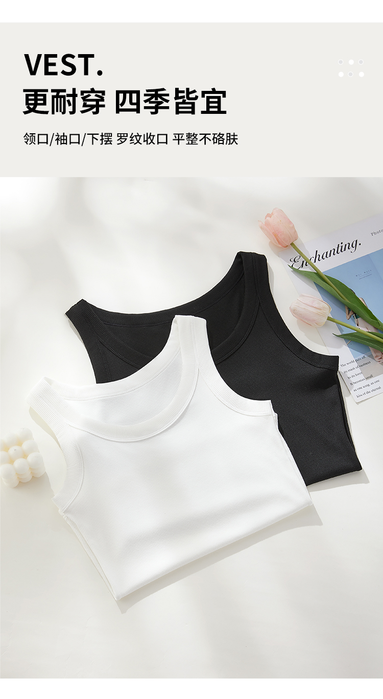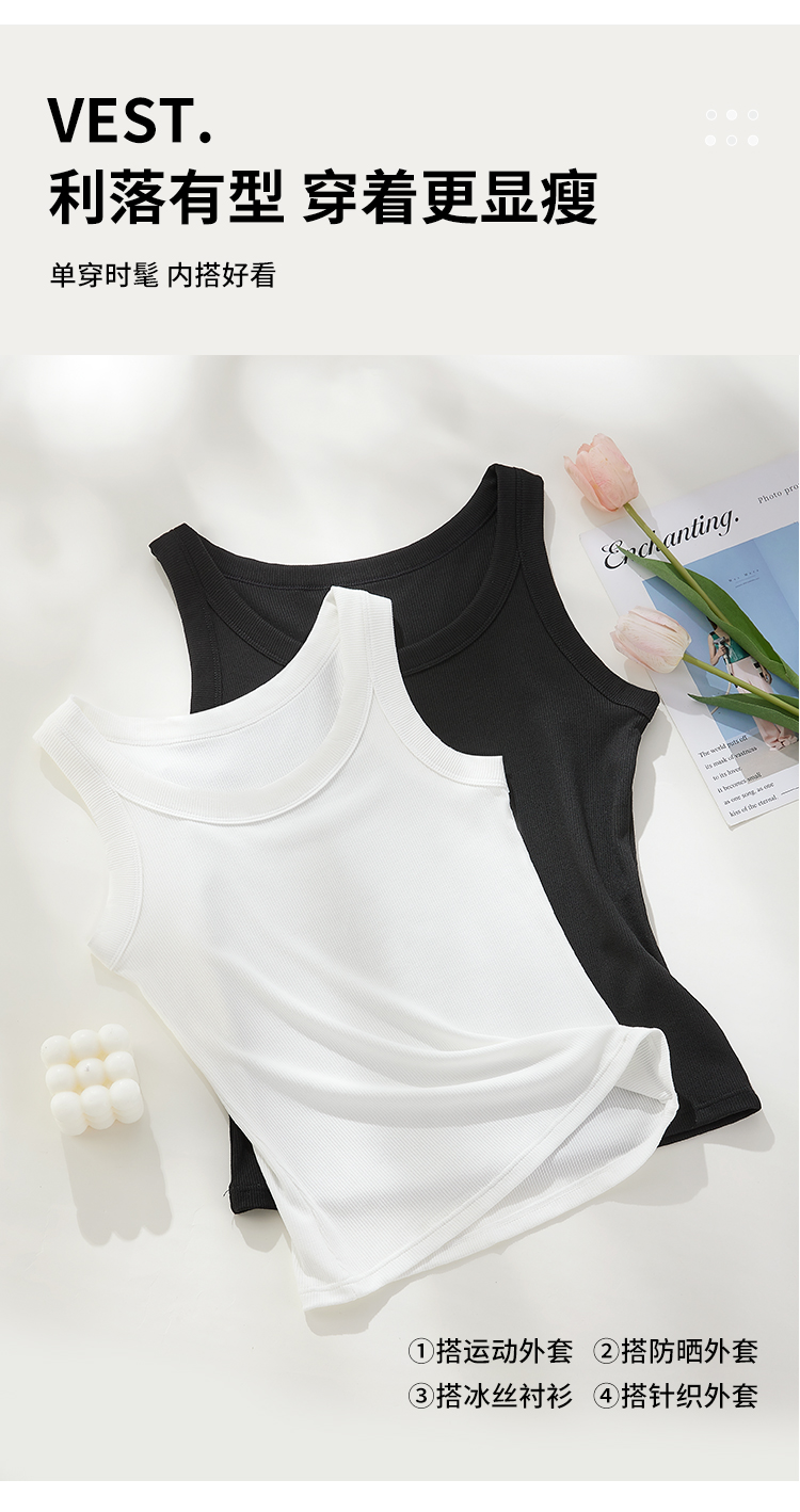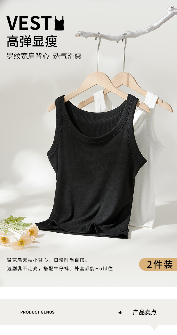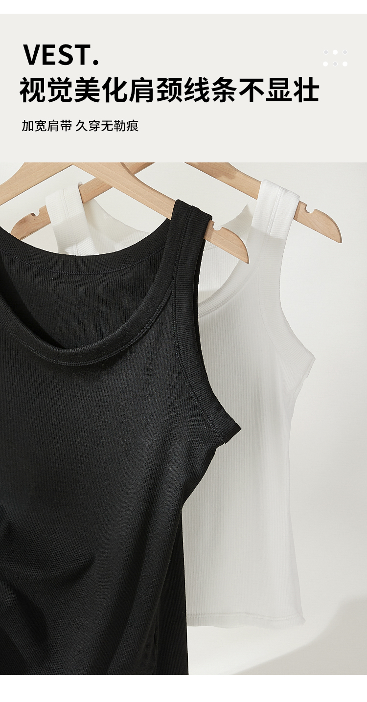 雅黛丽吊带背心春夏薄款罗纹宽肩外穿防走光打底无袖针织内搭上衣