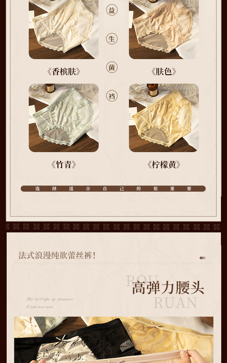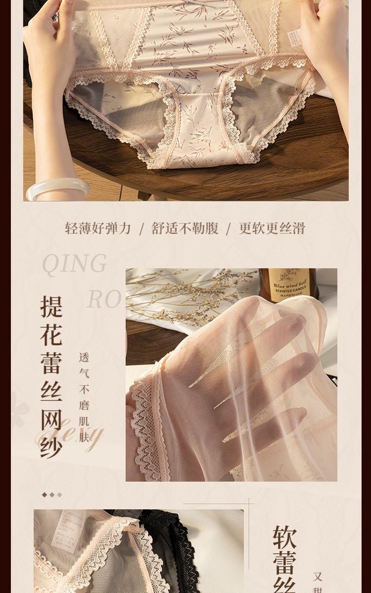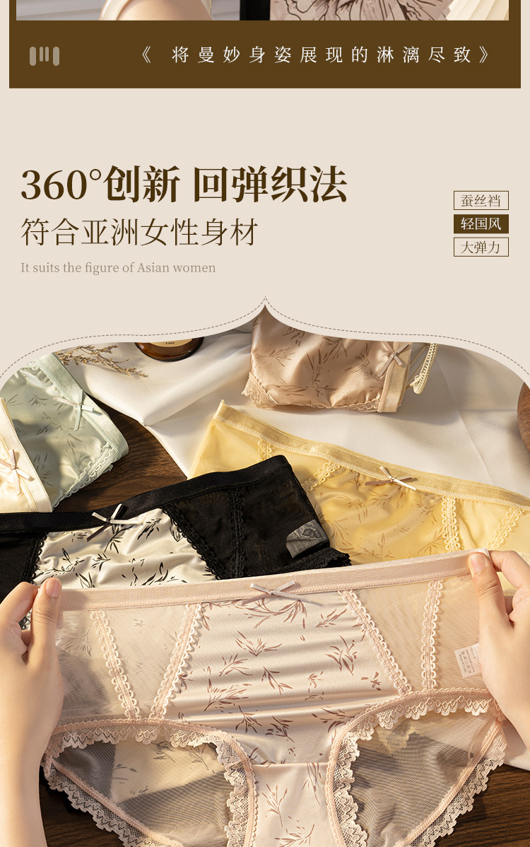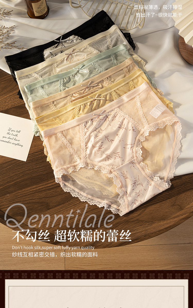 【49.9抢4条❗轻国风纯欲内裤】镂空朦胧撩人,轻松拿捏纯欲人设,轻盈包裹贴身零压,清爽不粘腻,桑蚕丝抑菌裆,性感蕾丝透气网纱纯棉甜美少女抗菌裆三角裤QQ