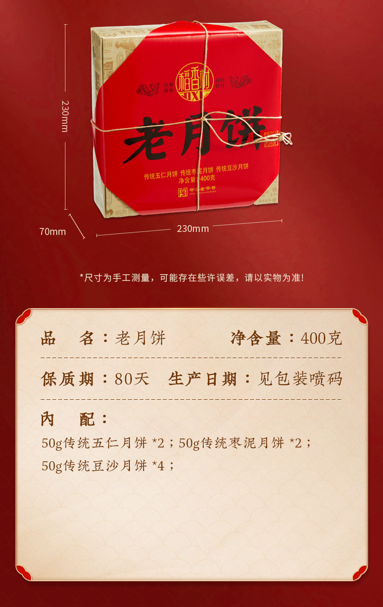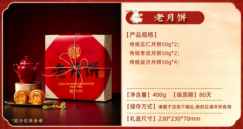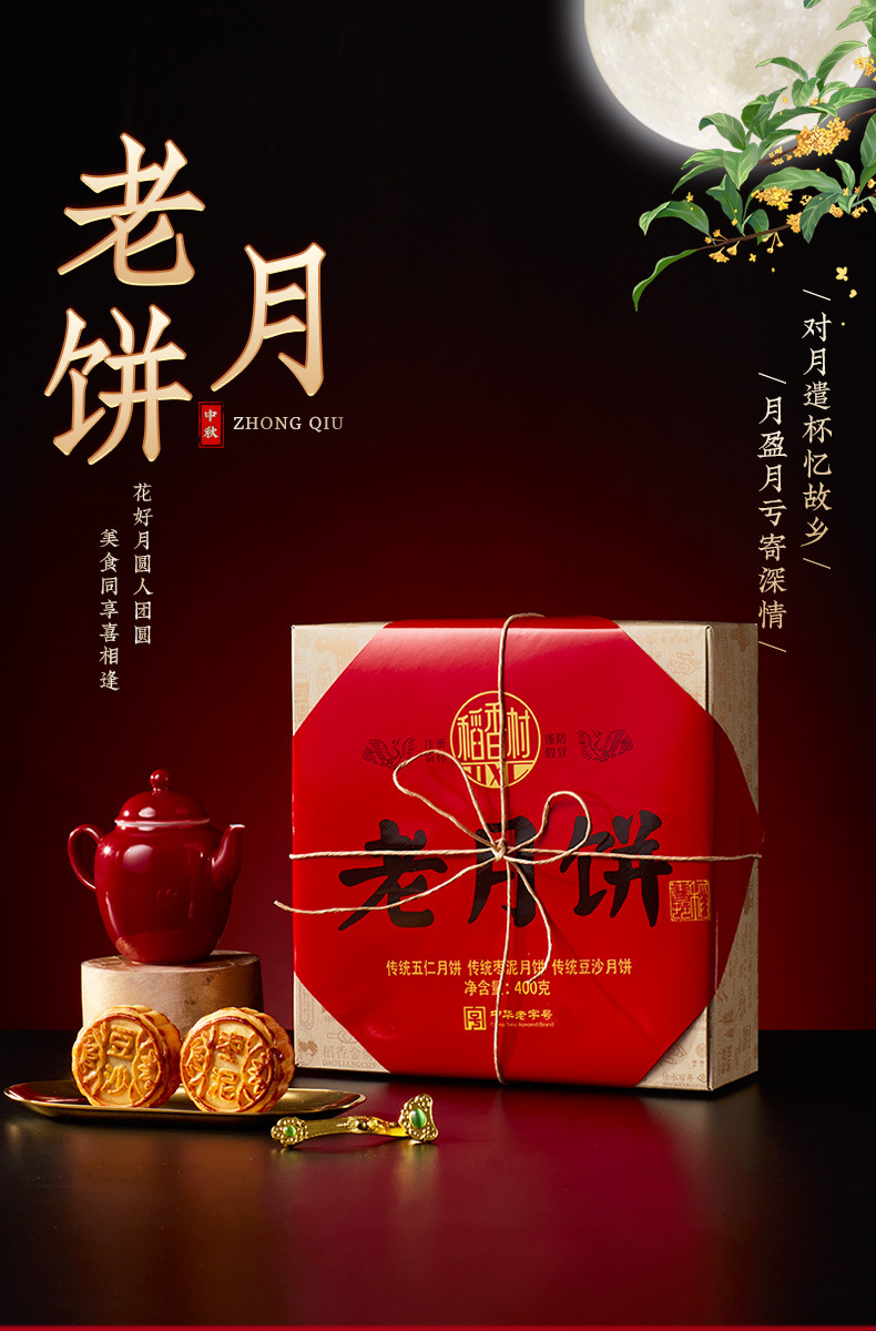 <有书独家>送礼袋!【花好月圆人团圆,美食同享喜相逢~】稻香村月饼礼盒装 老月饼400g 五仁枣泥多种口味 中秋节送礼品团购-QB