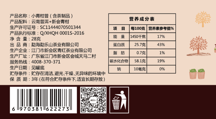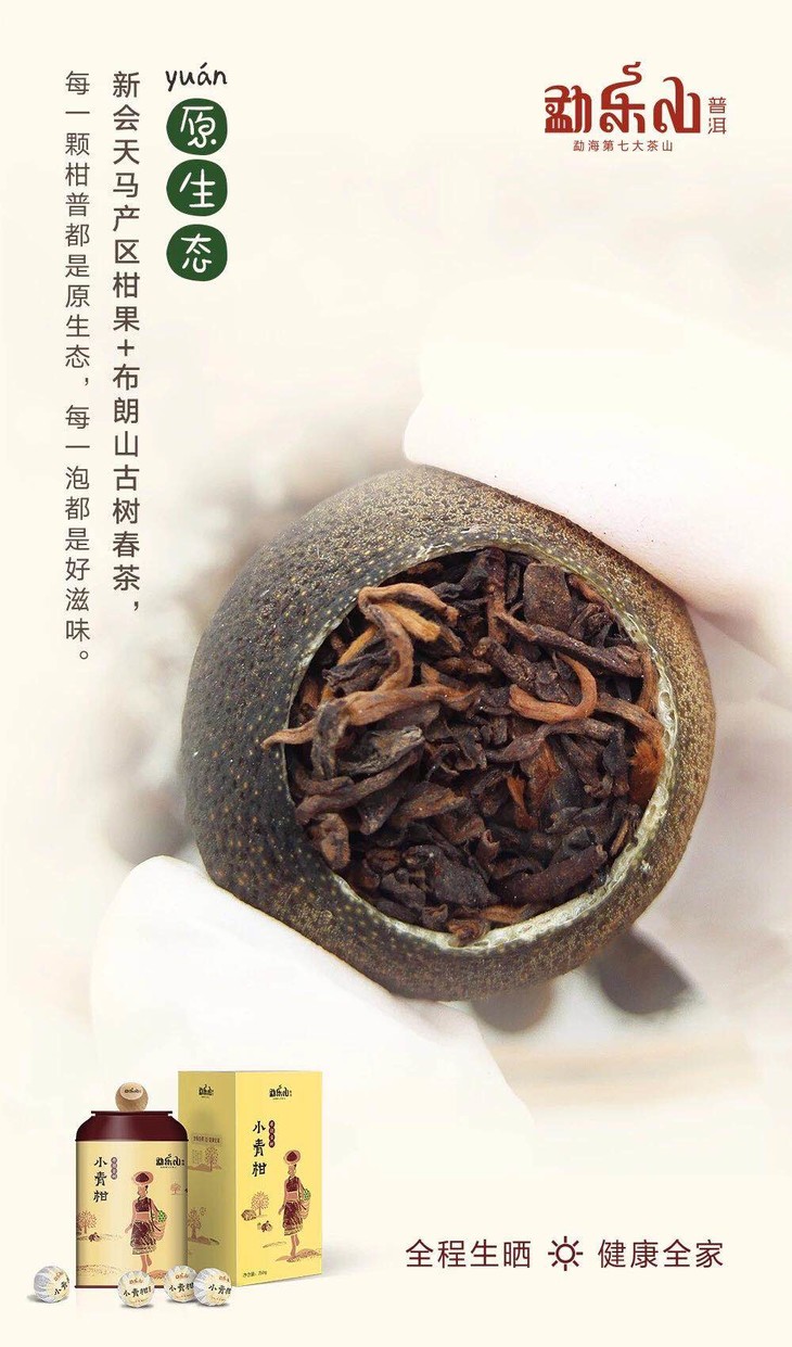 一款优质的柑普茶,取决于柑和茶双方的品质。柑,我们选择新会天马产区的优质柑果,柑香纯正高扬,甜蜜沁人心脾。茶,我们选择布朗山肥壮翠绿,叶质柔软的古树春茶,温润厚重。原生态的柑,原生态的茶,柑好茶好,柑普的滋味才好。