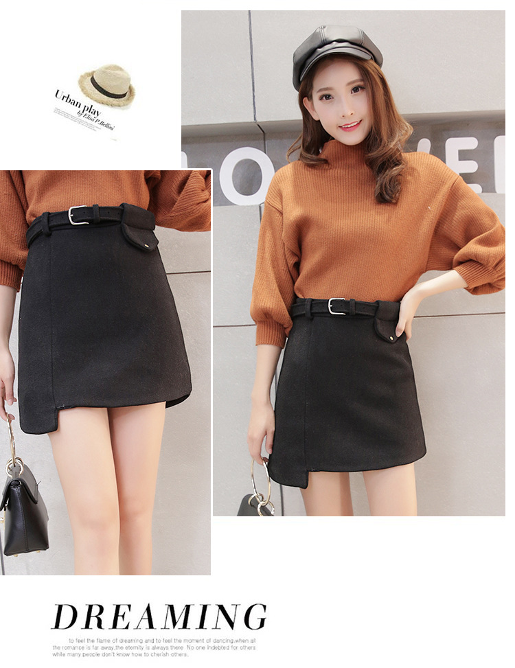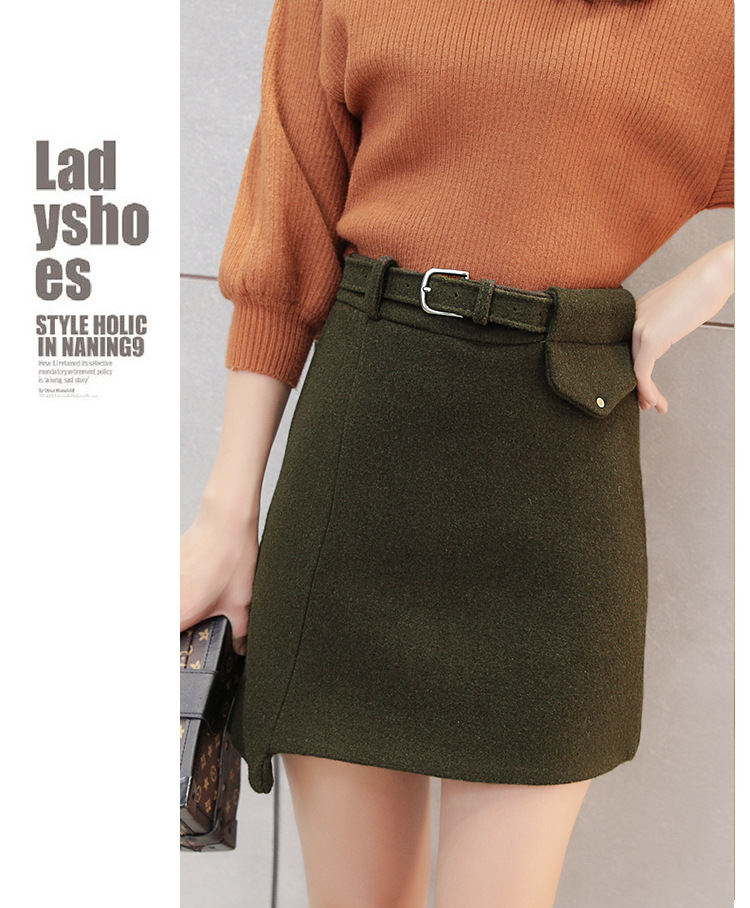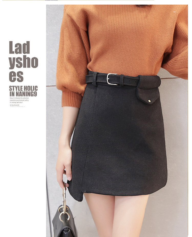 【A子群】秋冬新款毛呢短裙时尚A字裙修身显瘦呢子半身裙 商品图0