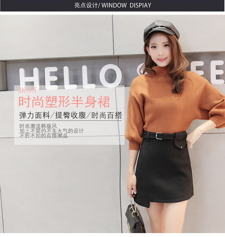 【A子群】秋冬新款毛呢短裙时尚A字裙修身显瘦呢子半身裙