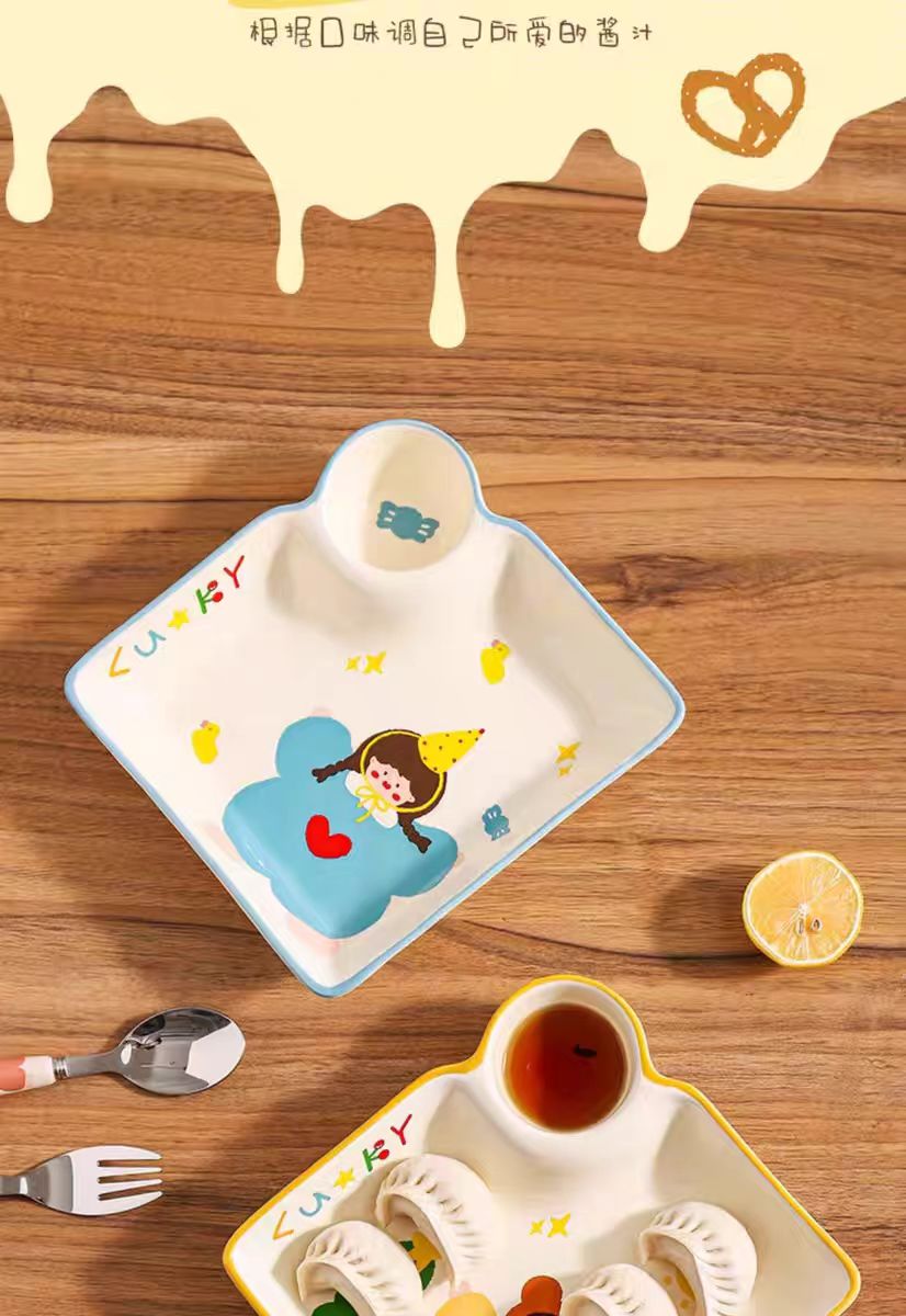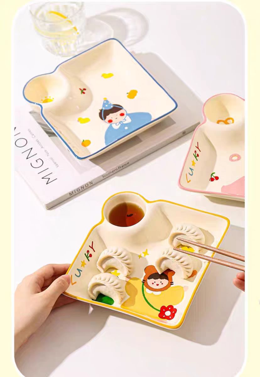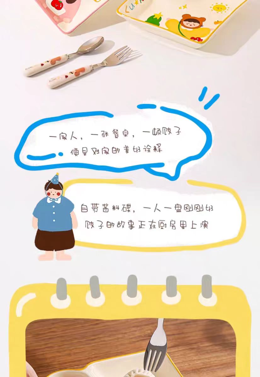 4楼Eubelle欧蓓 川岛屋一家四口饺子盘子带醋碟 活动价:25.8元
