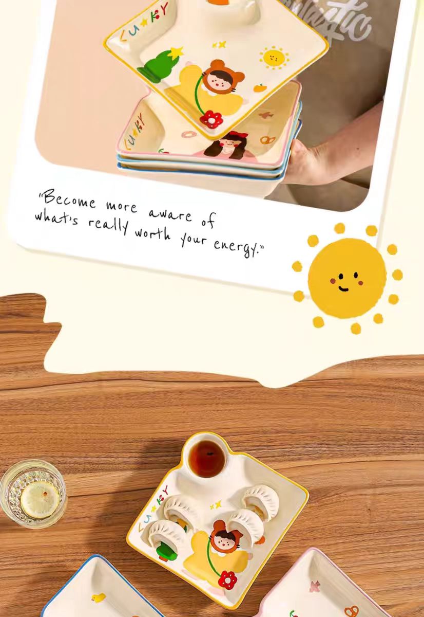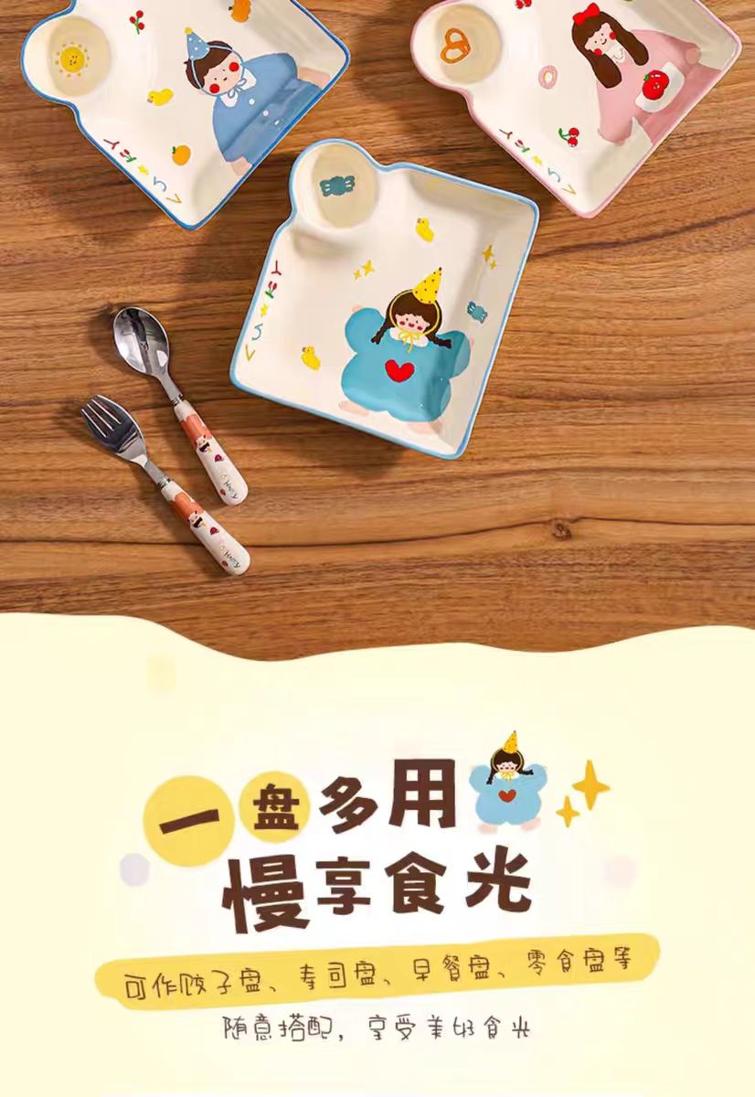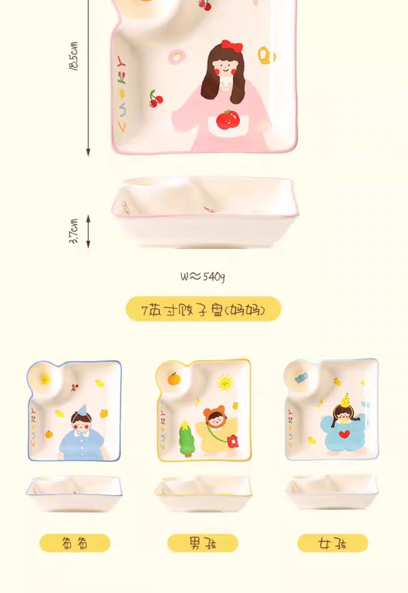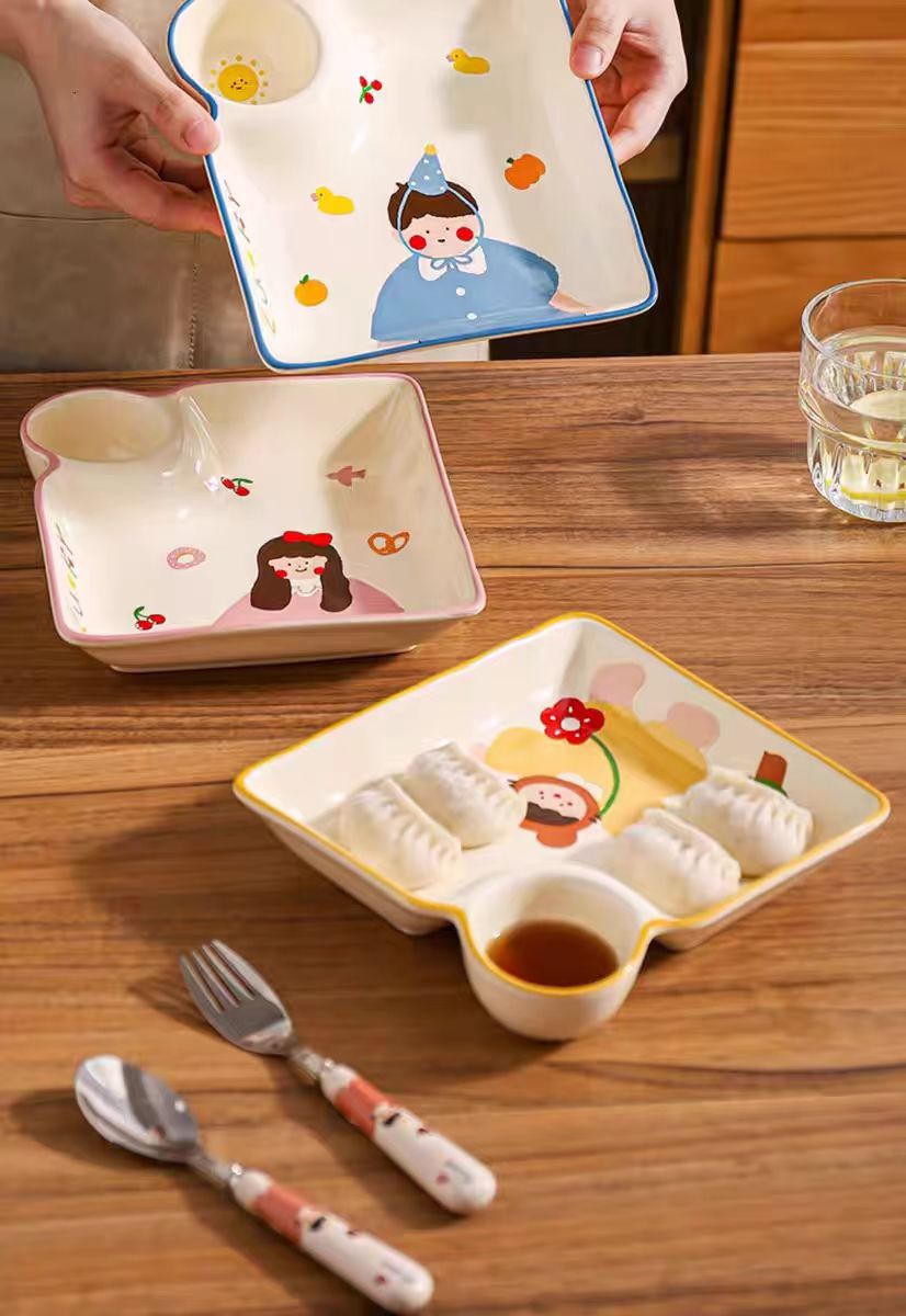 4楼Eubelle欧蓓 川岛屋一家四口饺子盘子带醋碟 活动价:25.8元