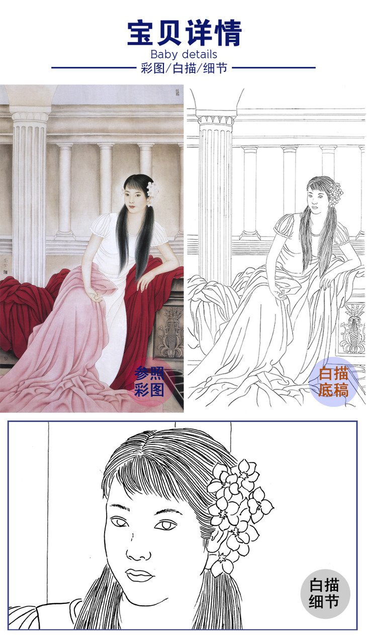 崔景哲竖幅工笔现代仕女人物白描底稿-B010