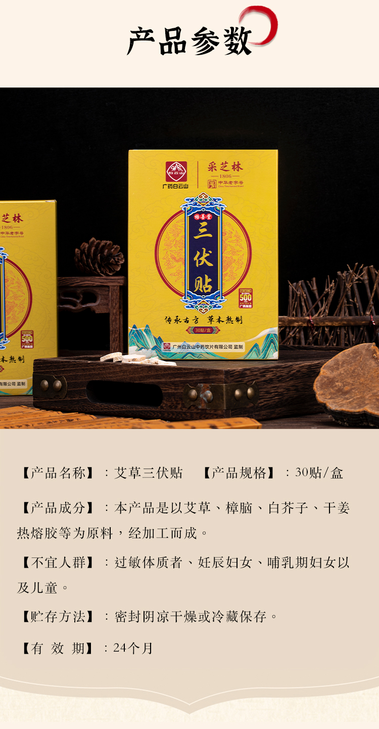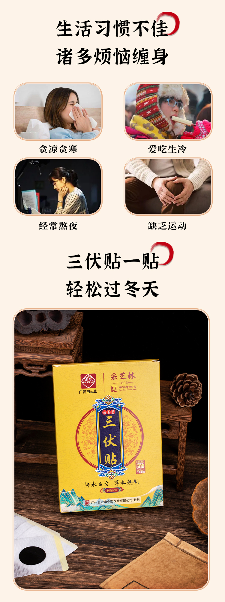 【买2送2再减10元】广药白云山采芝林三伏贴冬夏养阳冬病夏调草本汇聚成分安心温和养护三伏贴一贴轻松过冬天