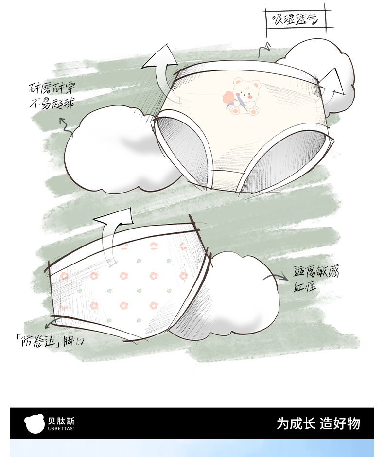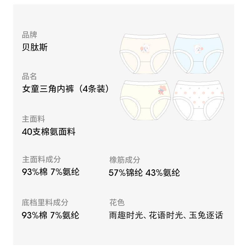 贝肽斯女童内裤夏季薄款儿童宝宝三角裤透气不夹屁屁抑菌纯棉a类【合作品牌】