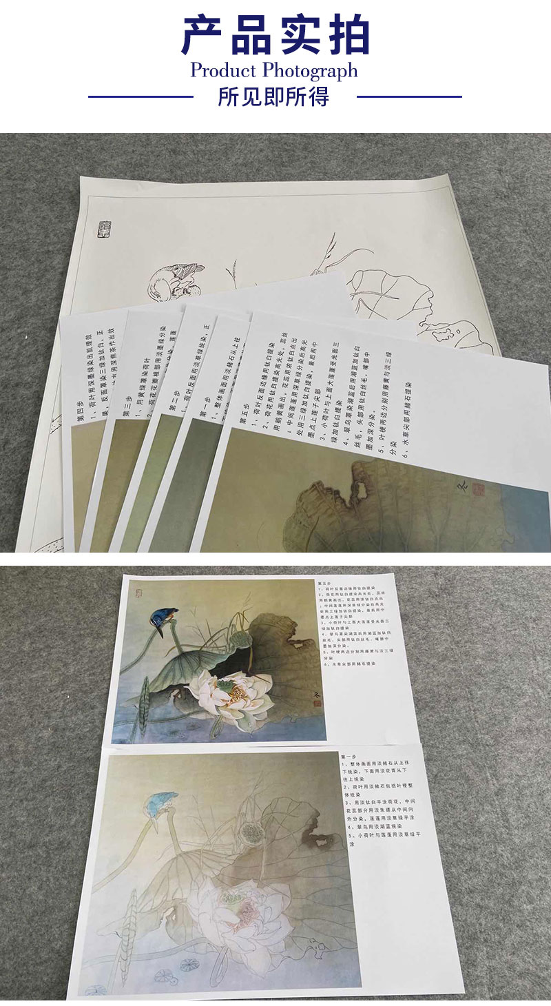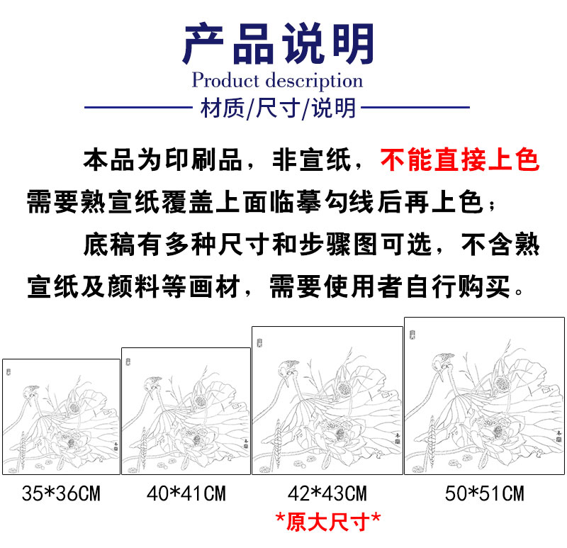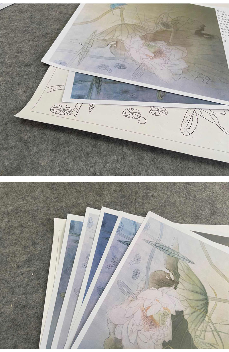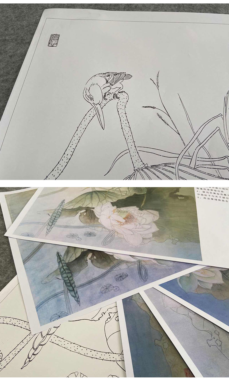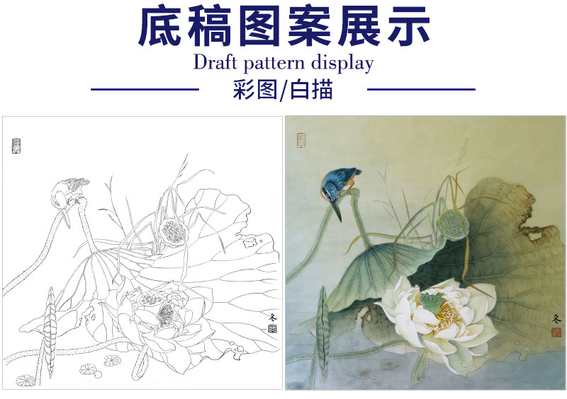 【有步骤、大彩图】杨冬冬工笔画白描底稿斗方小品《纤手弄琼珠》荷叶荷花翠鸟初学者临摹花鸟线稿HD53