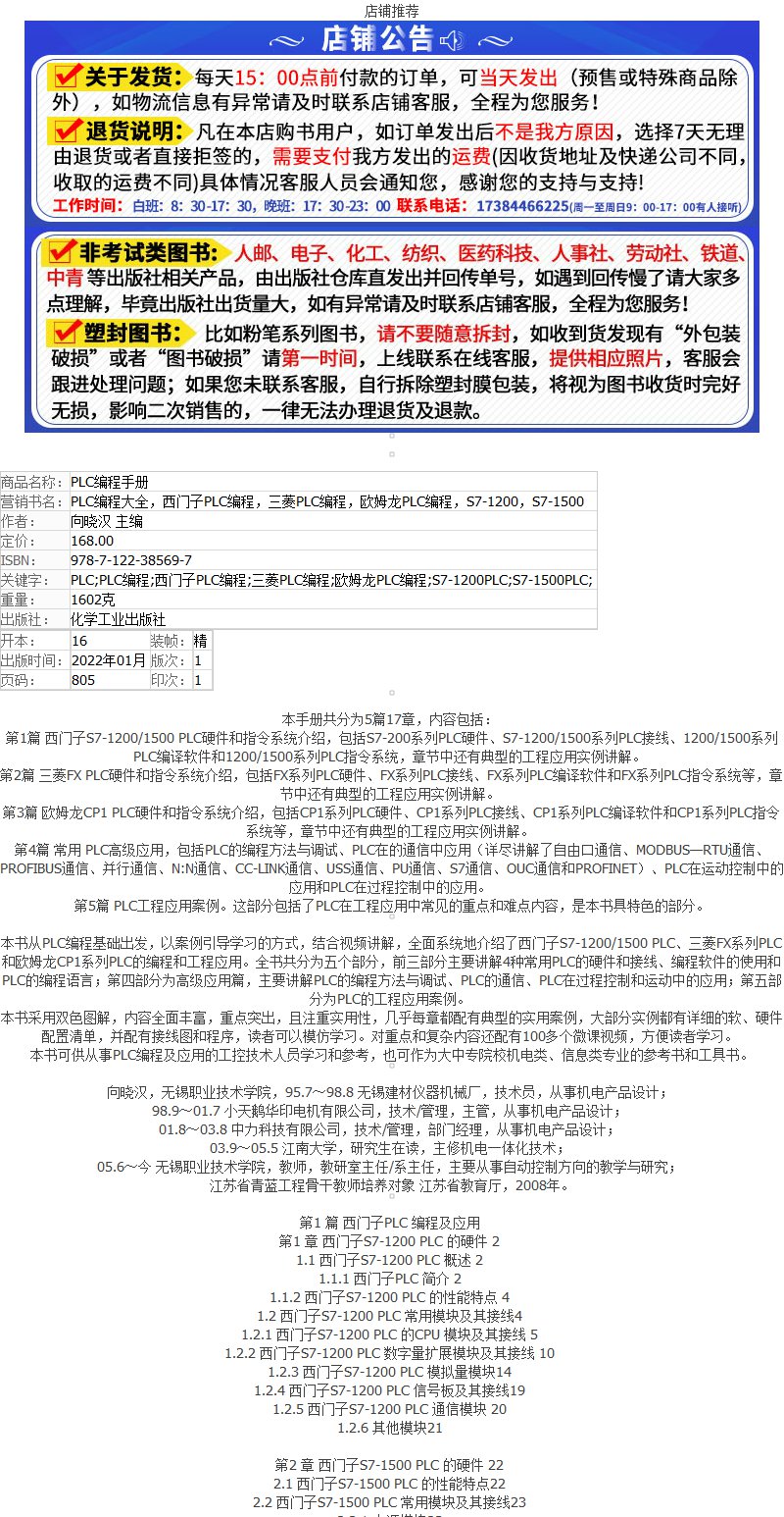 正版 老向讲工控 PLC编程手册 PLC编程大全 西门子PLC编程 三菱PLC编程 欧姆龙PLC编程 PLC编程及应用工控技术人员学习应用书籍 化学工业出版社 9787122385697