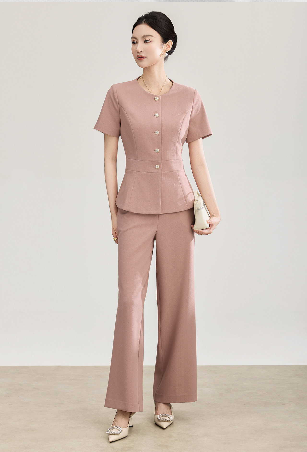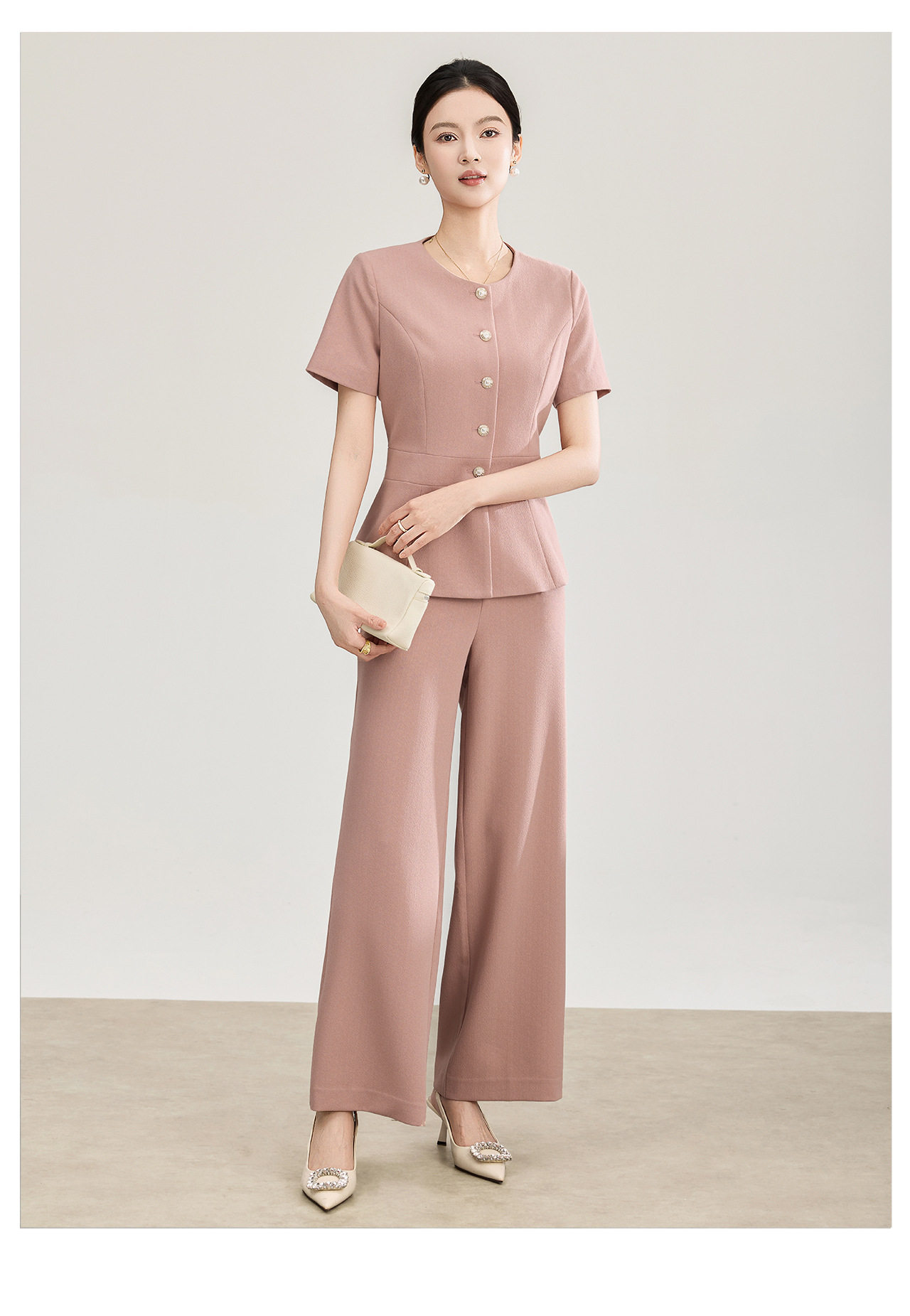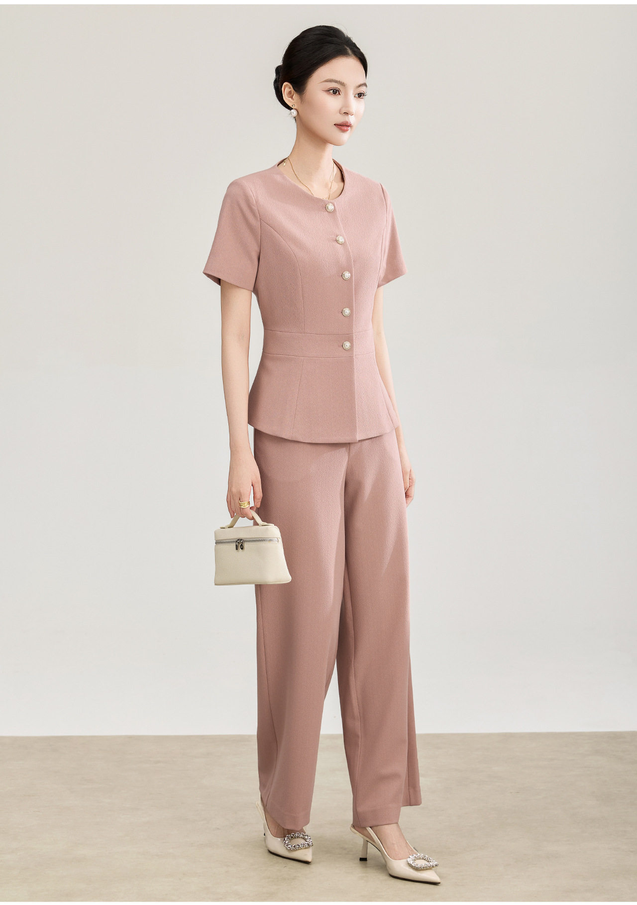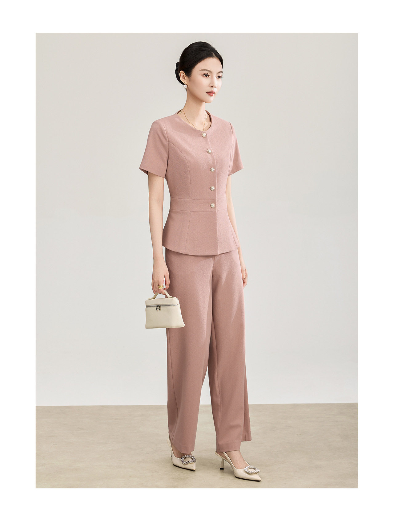 「高货wl」全新升级【铂金会员413/天猫559/差价146】(99927)洛诗琳2026春季气质装通勤收腰上衣精仿醋酸休闲裤两件套