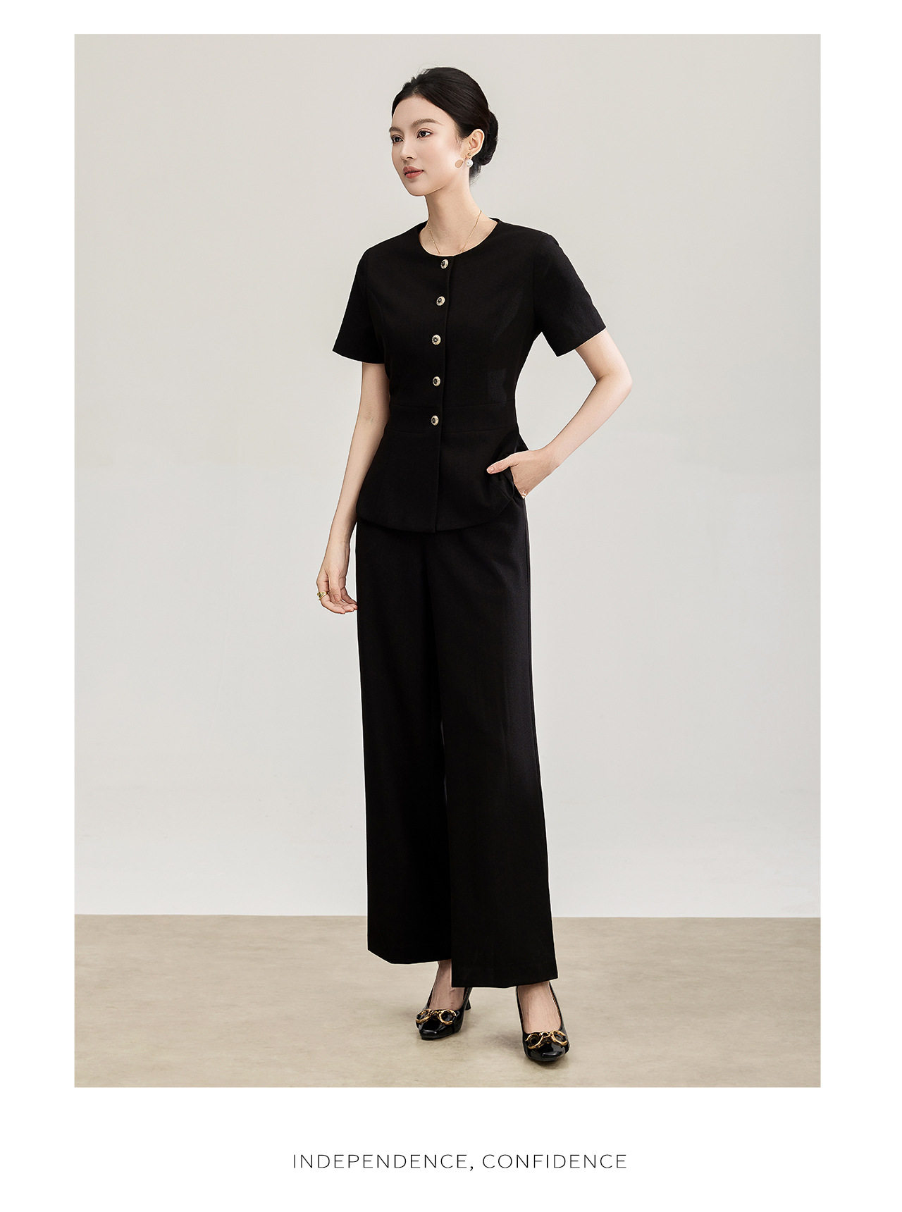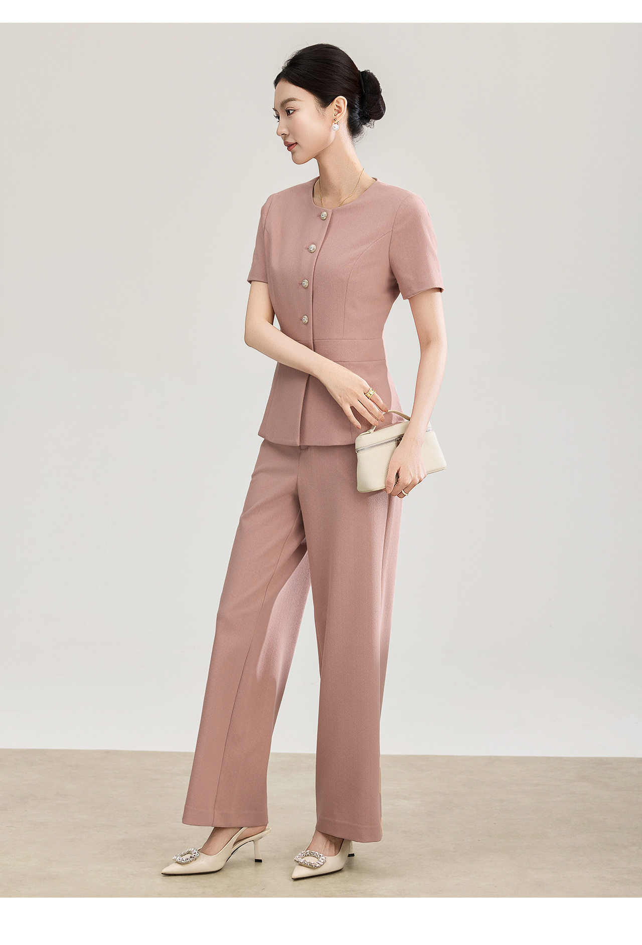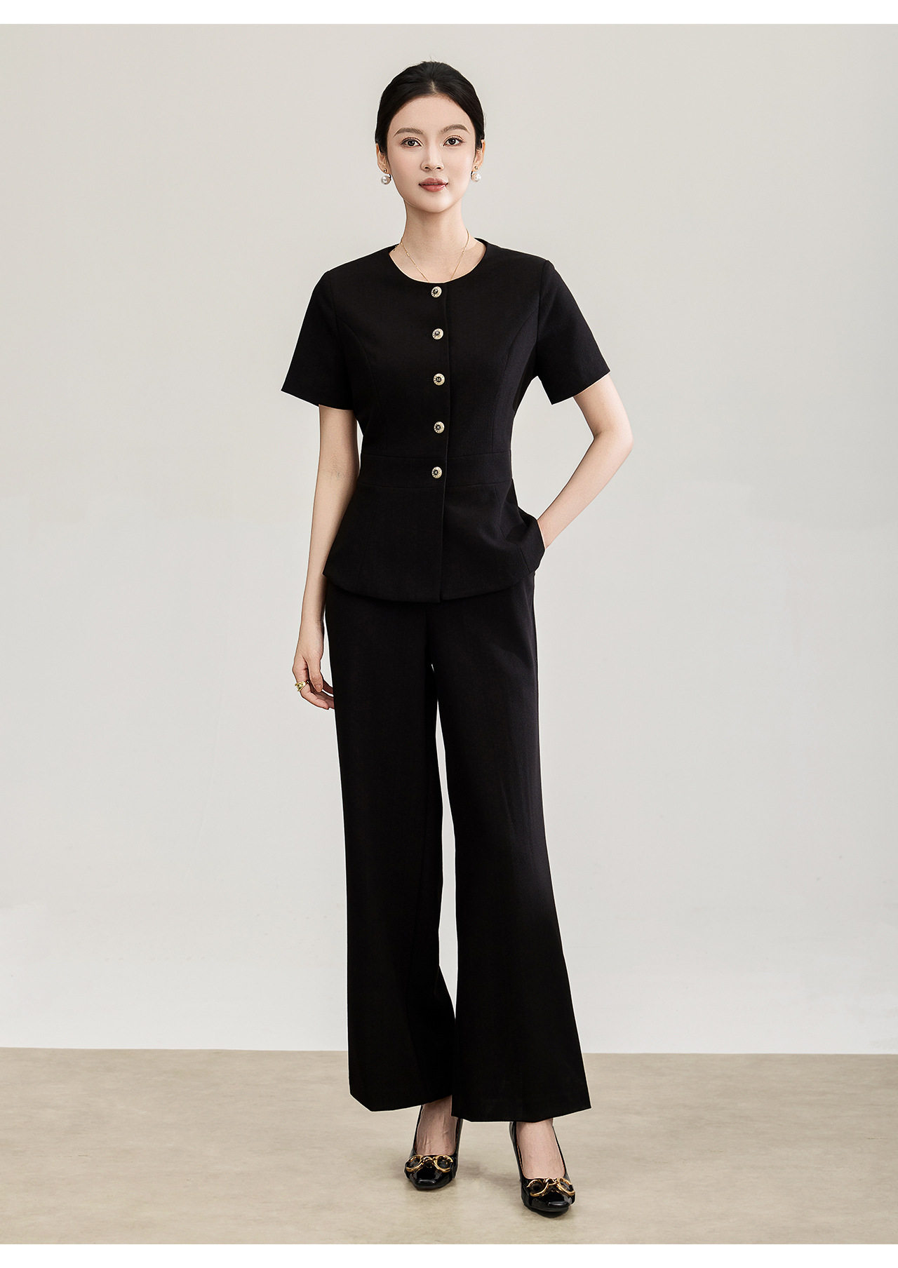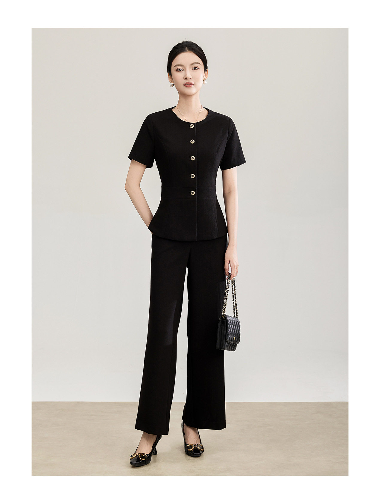 「高货wl」全新升级【铂金会员413/天猫559/差价146】(99927)洛诗琳2026春季气质装通勤收腰上衣精仿醋酸休闲裤两件套