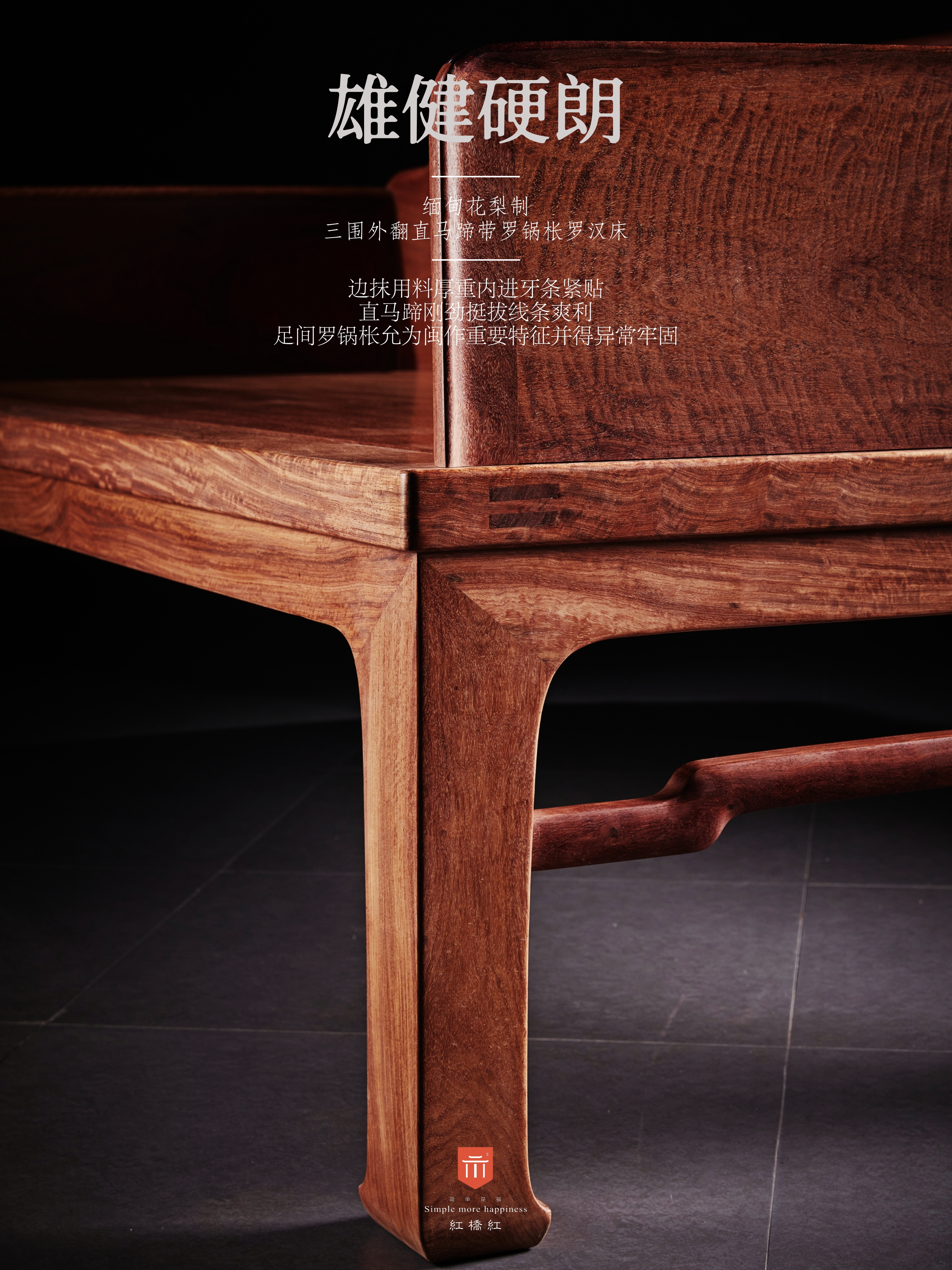 正宗缅甸花梨(大果紫檀)制作,传统榫卯工艺,零白皮零拼补,烘干严谨。
