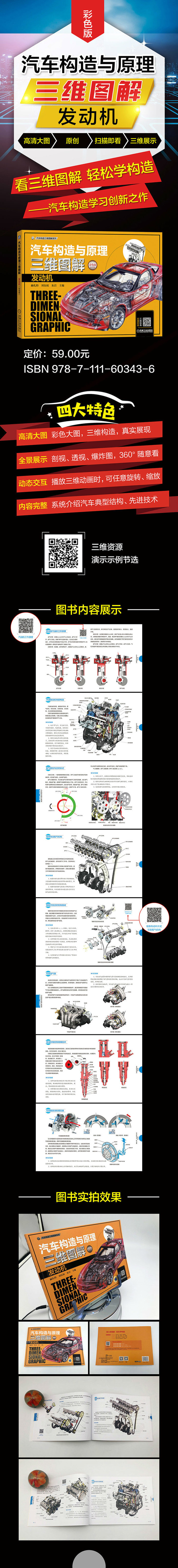 本书主要介绍了汽车发动机结构特点和工作过程等内容,涵盖汽车及发动机概述,曲柄连杆机构,配气机构,汽油机供给系统,柴油机电控技术,空气供给与进、排气装置,冷却系统,润滑系统和发动机排放控制等常见教学知识点,并增加了知识链接等延伸阅读内容。本书采用先进的计算机三维虚拟与渲染技术,运用剖切、分解、透视等表现方式,直观清晰地展现汽车结构与工作原理。
