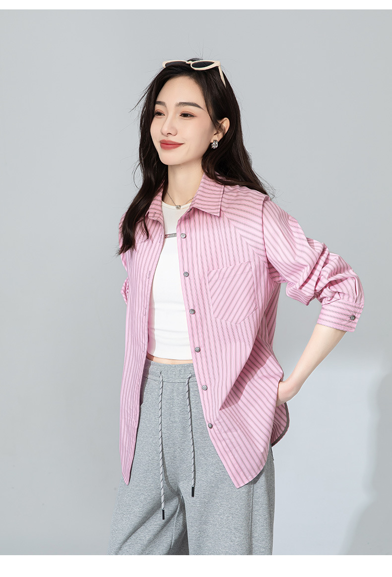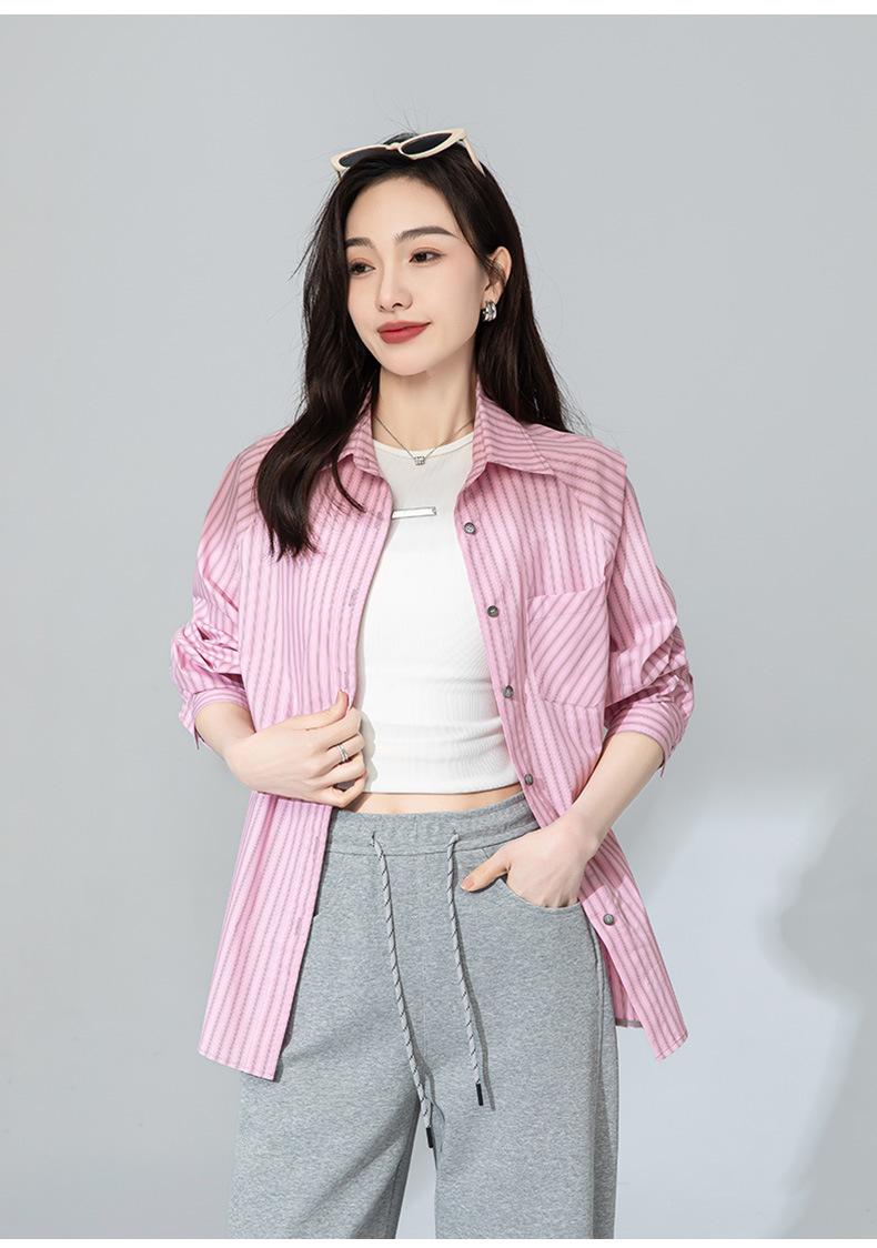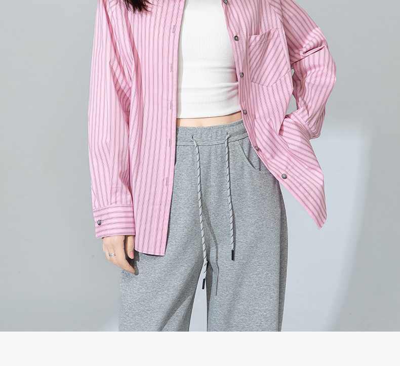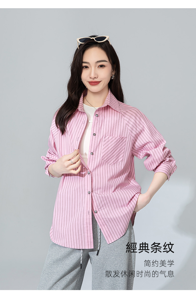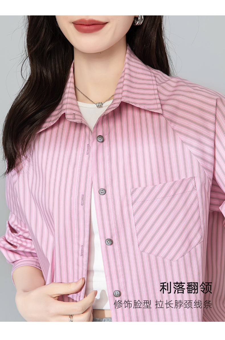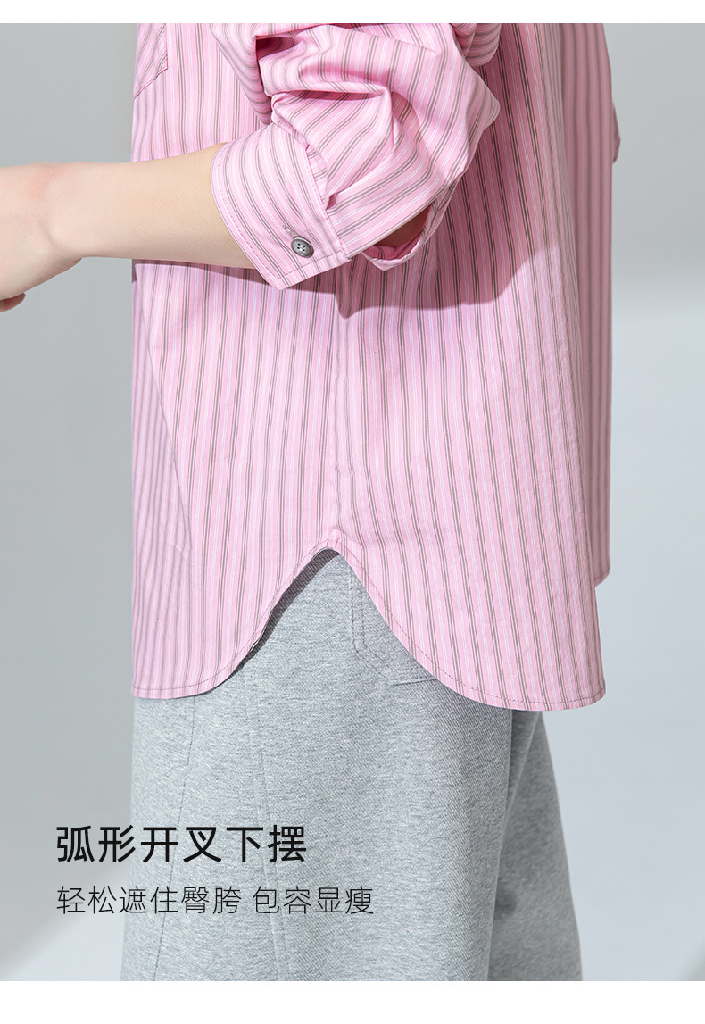 【高货xg】全新升级【铂金会员174/天猫229/差价55】(20905) 洛诗琳早春新款设计感小众粉条纹叠穿宽松慵懒风衬衫外套