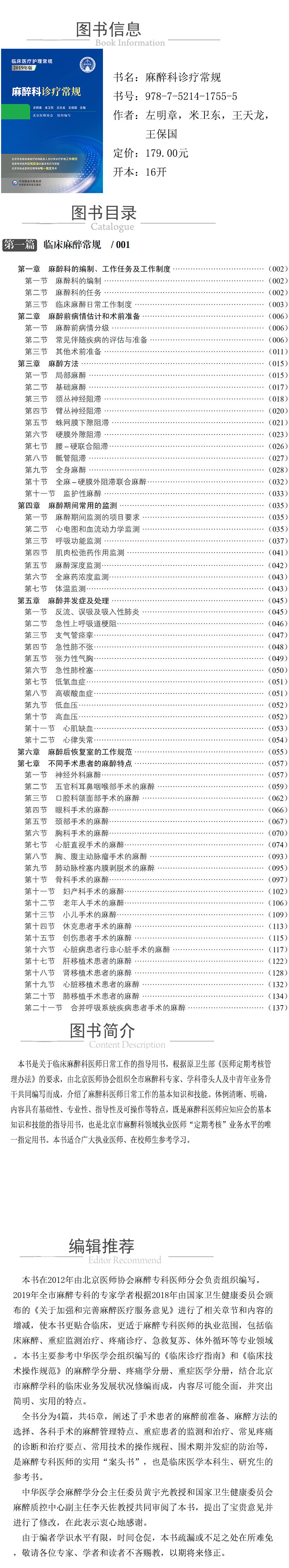 2020年新书:麻醉科诊疗常规 左明章、米卫东、王天龙编( 中国医药科技出版社)