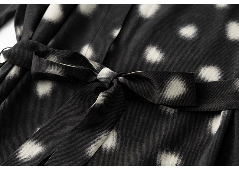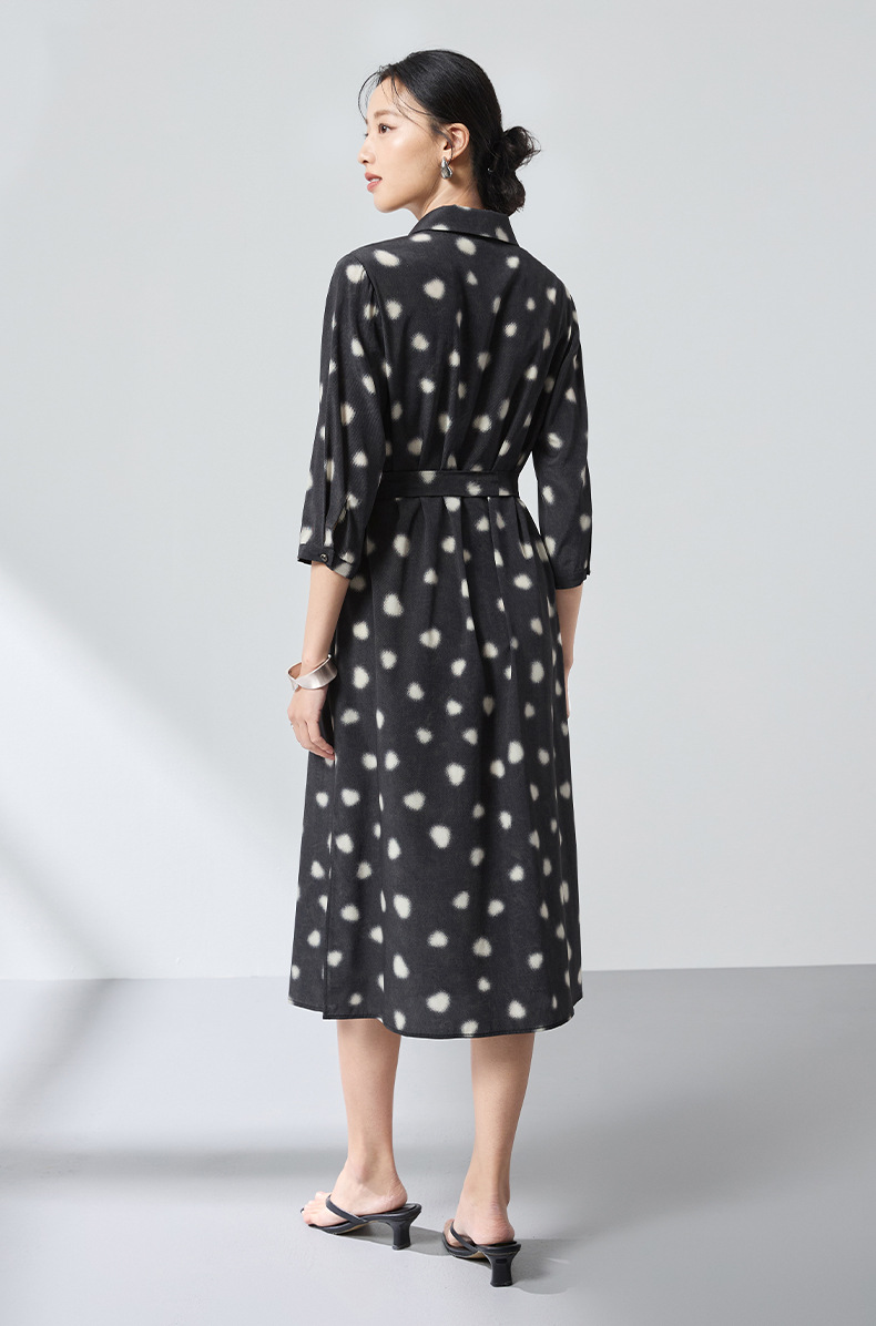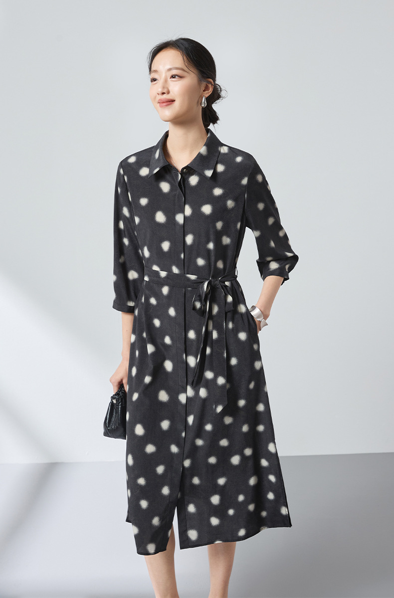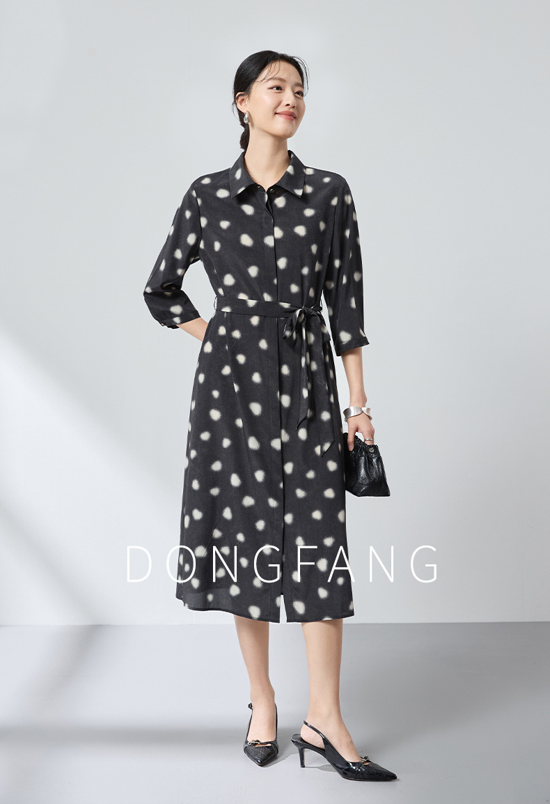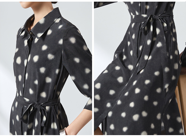 QS桑蚕丝法式连衣裙真丝26春气质翻领心型印花收腰裙气质2609